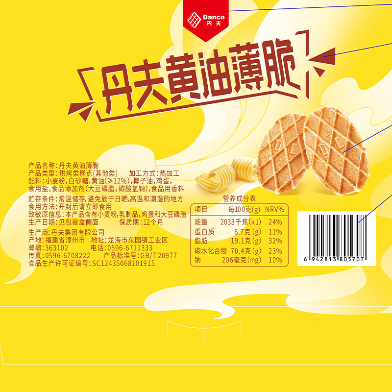 丹夫华夫饼干黄油薄脆休闲零食茶点营养早餐糕点充饥解馋小吃66g
