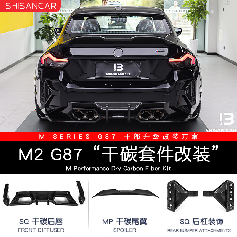 适用宝马新M2/G87改装前唇后唇侧裙尾翼风口MP套件干式碳纤维中网