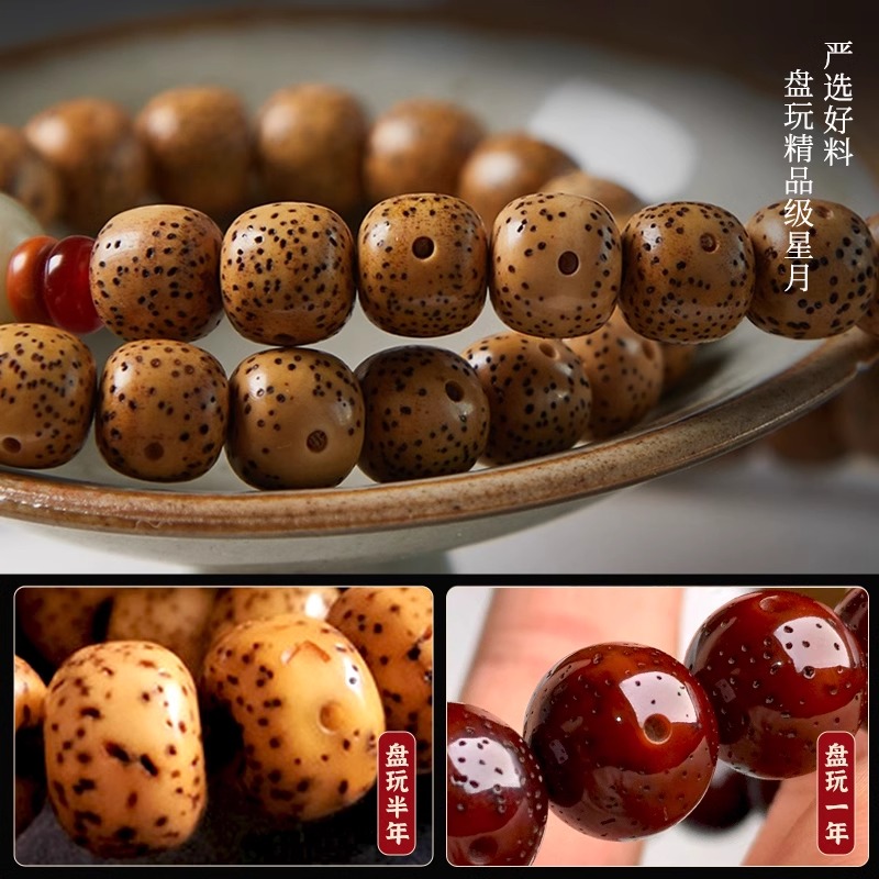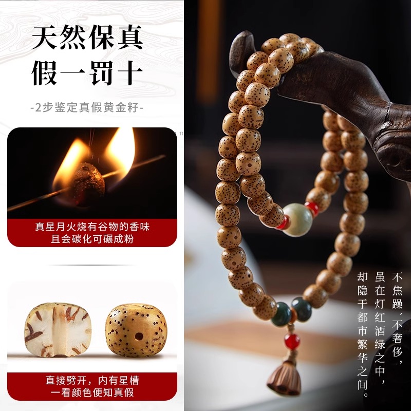 精品海南黄金籽星月菩提手串双圈好运鸡油黄星月文玩配饰男女手链