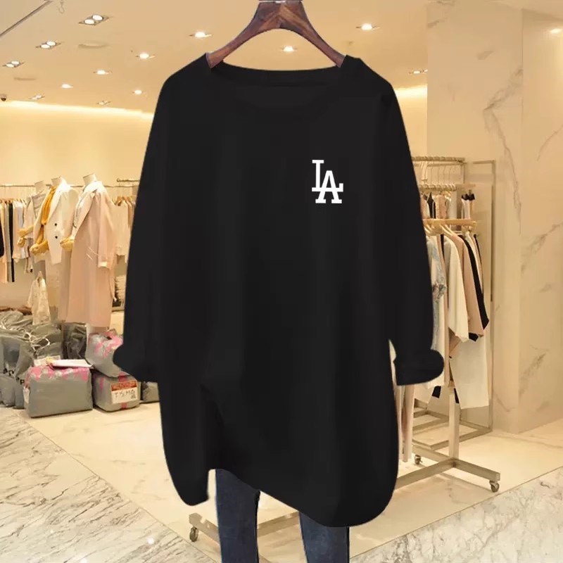白色宽松纯棉长袖T恤女秋冬季2024新款欧货大版加绒中长款打底衫