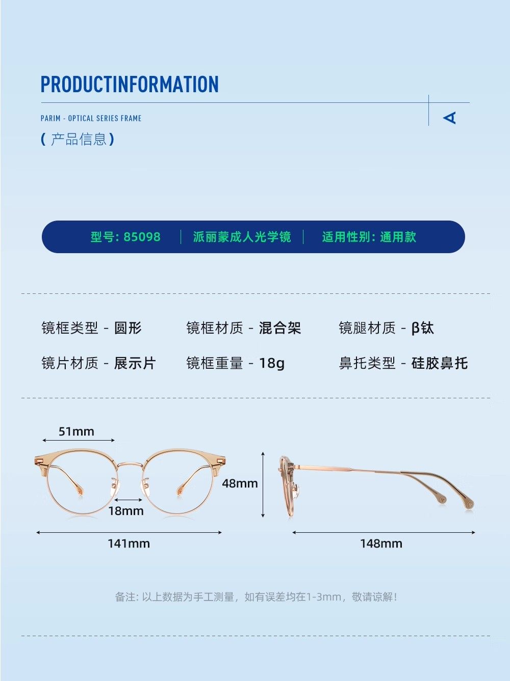派丽蒙猫耳半框圆形眉线框眼镜女款可配度数眼镜框近视镜架85098