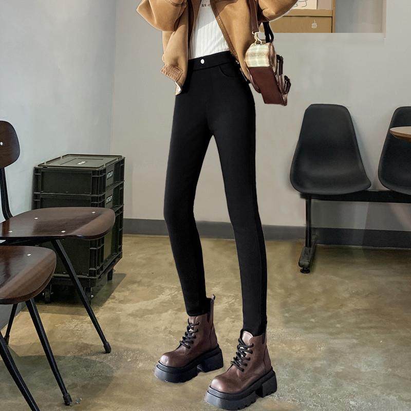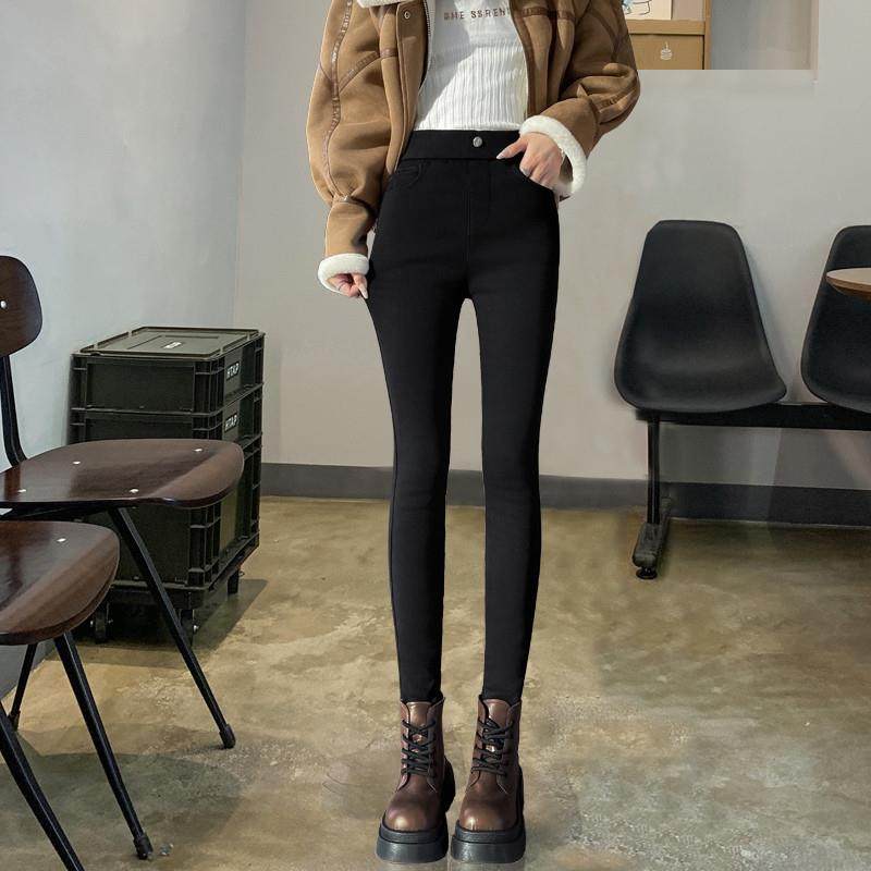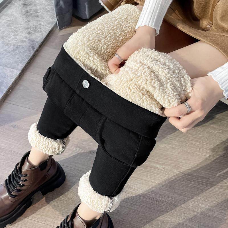羊羔绒打底裤女秋冬季加绒加厚东北一体棉裤高腰小脚外穿黑色裤子