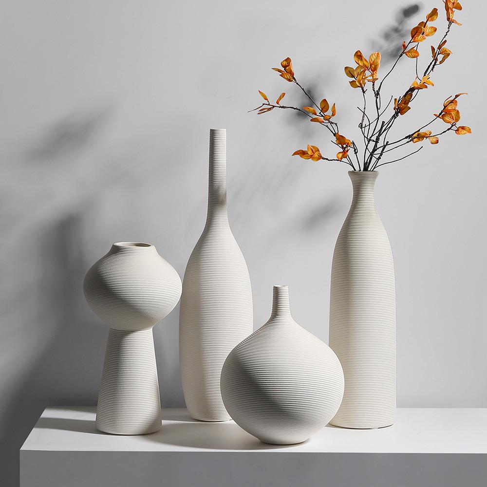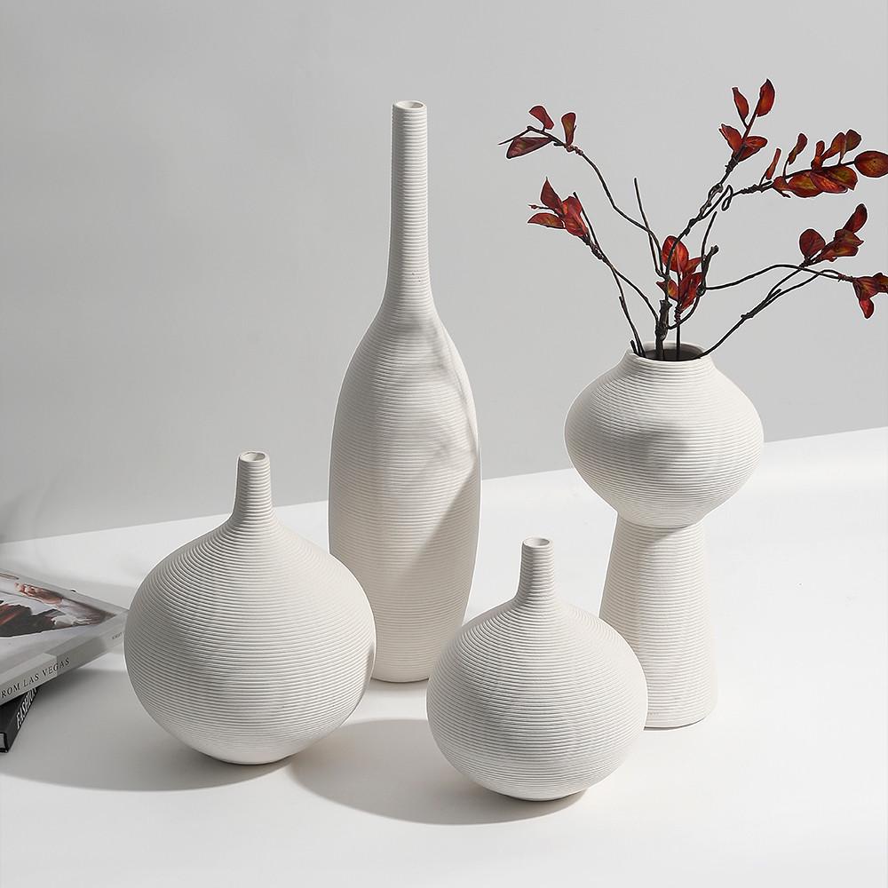 细口白色陶瓷小花瓶摆件客厅插花创意干花花器中式风格家居装饰品