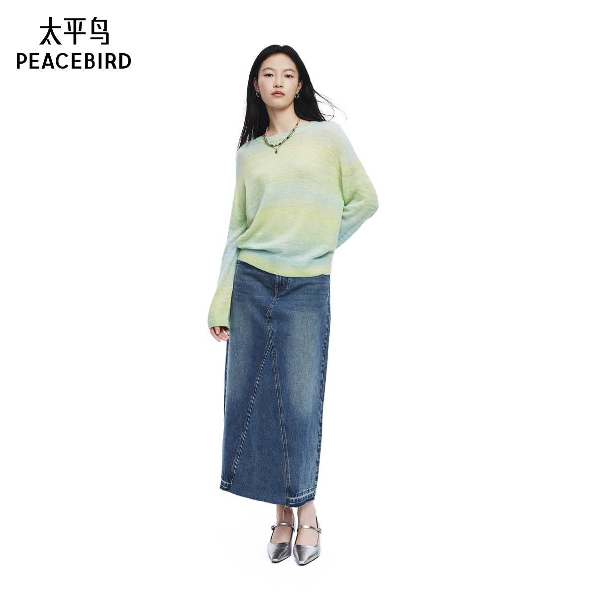 太平鸟女装牛仔直筒半身裙新款水洗做旧长裙A1HFF1252