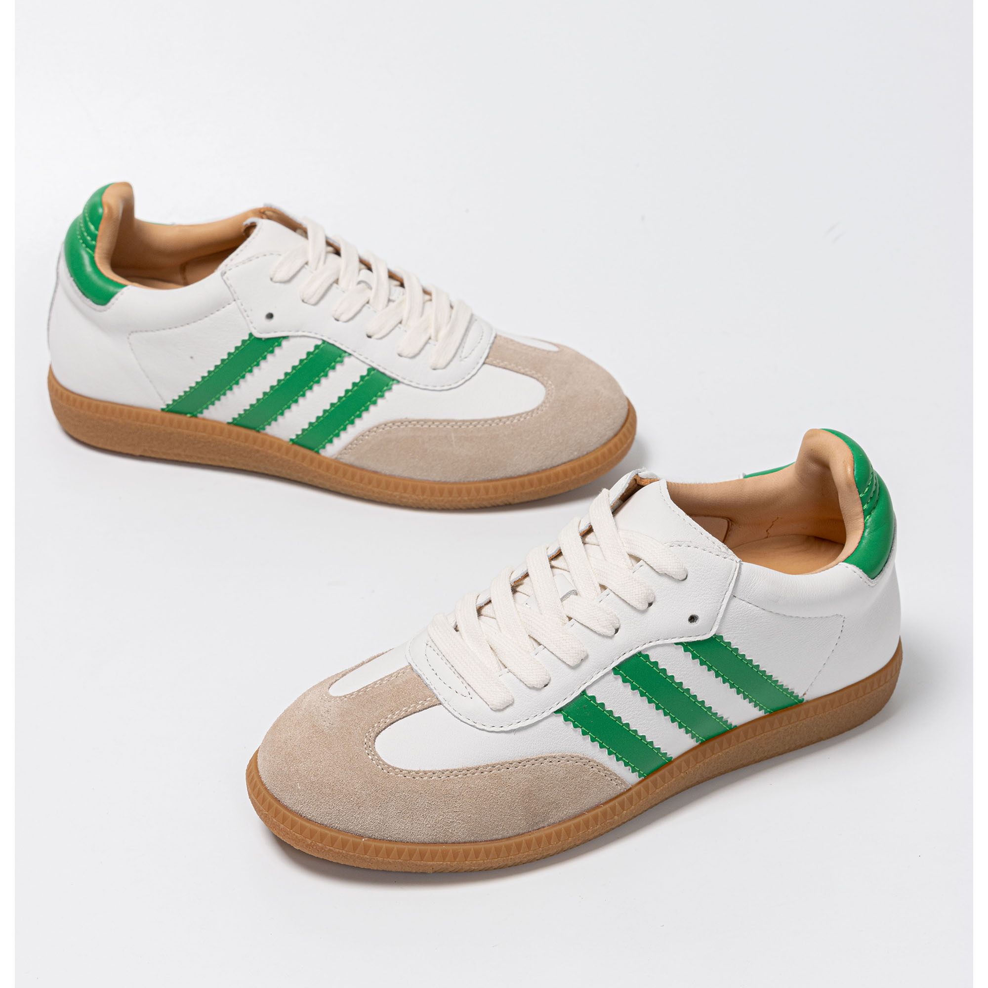 【穿靴子的猫】绿尾德训鞋女时尚真皮小白鞋休闲板鞋隐形增高5cm