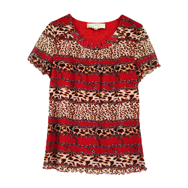菲琪女装中老年台湾t恤上衣妈妈装网纱小衫短袖夏碎花打底非雪纺