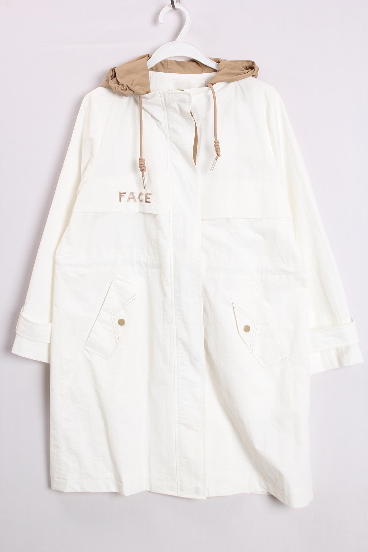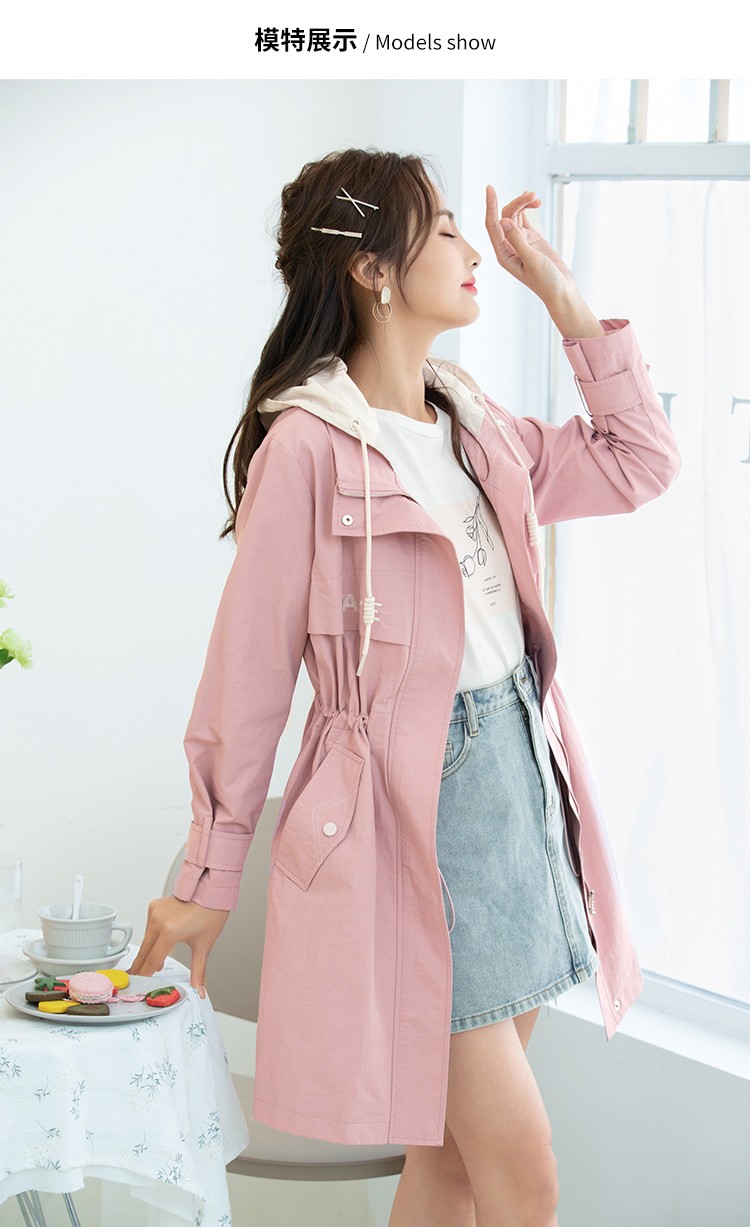 朵以2021春秋新款时尚休闲拼色连帽风衣中长款外套女36DC726055