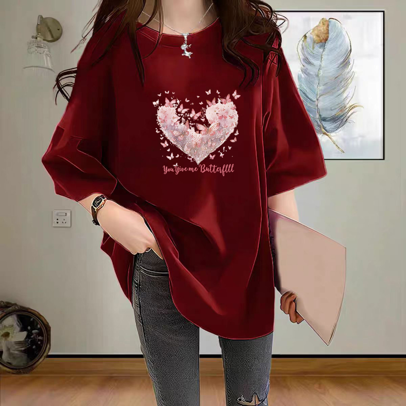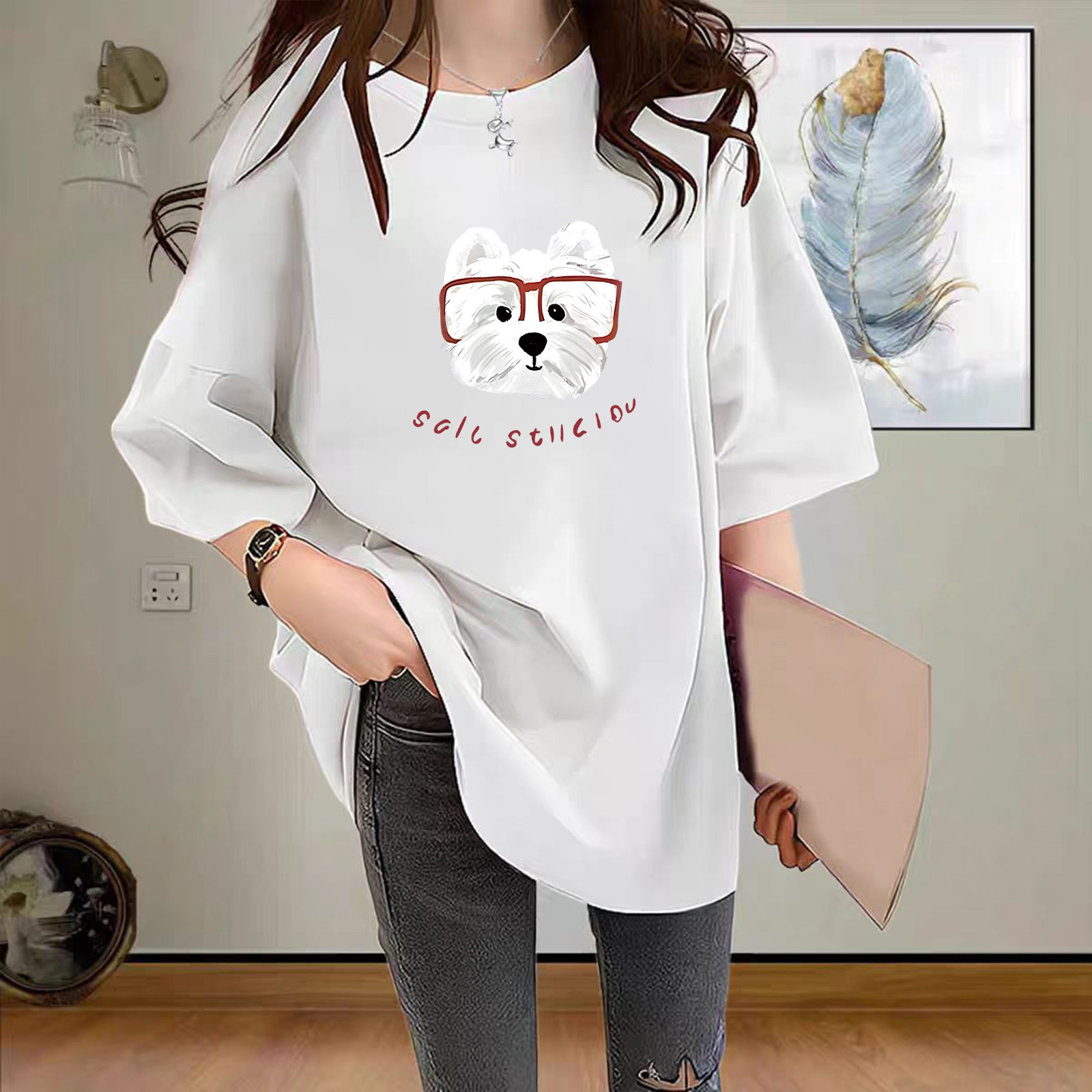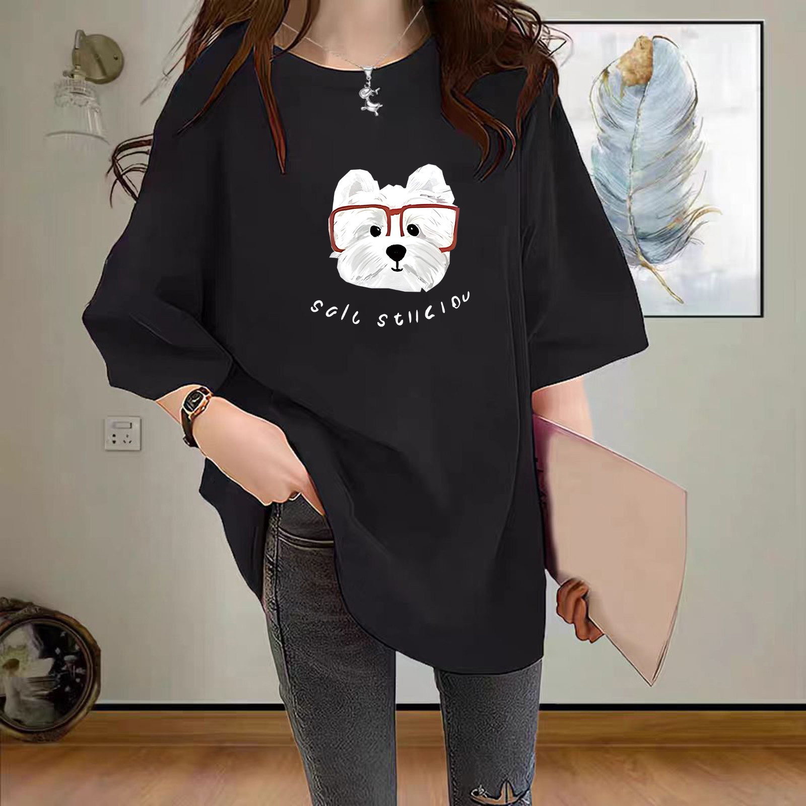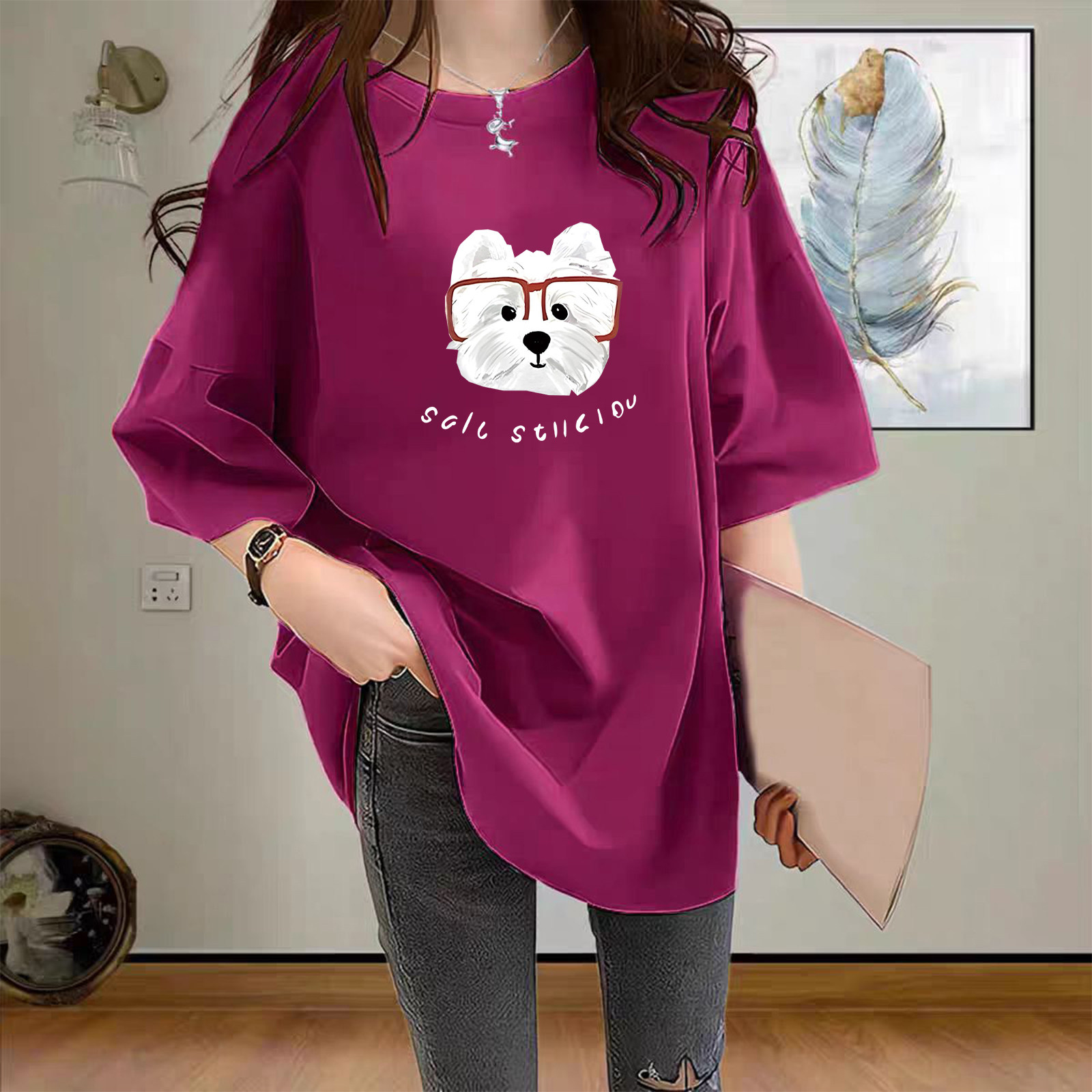 磨毛粉色小狗印花短袖t恤女夏季新款洋气宽松半袖体恤设计感上衣