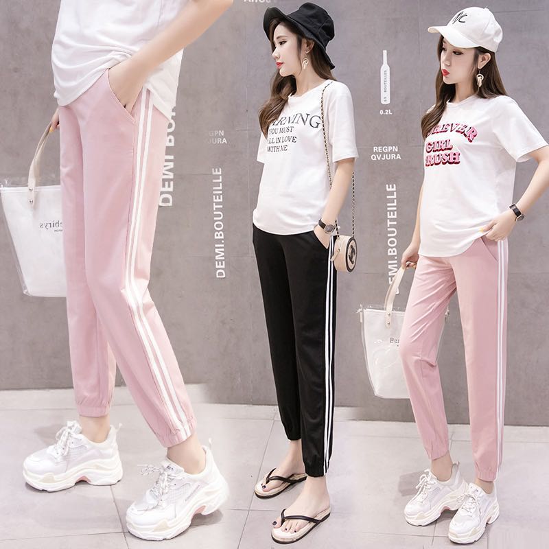 孕妇裤夏季薄款外穿宽松大码x时尚休闲潮妈托腹打底九分裤子孕妇