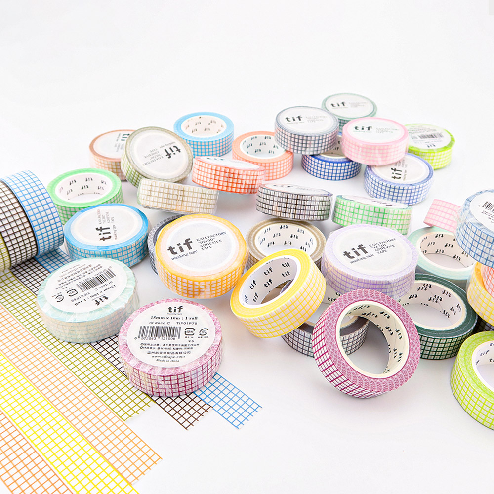 tif格子胶带分装斜纹网格整卷波点桌布手账胶带基础彩色格纹全套