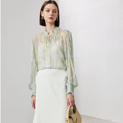 金银顺纡两件套-ML-351绿色印花衬衫(含吊带)