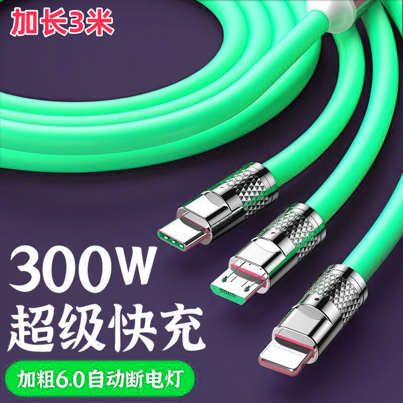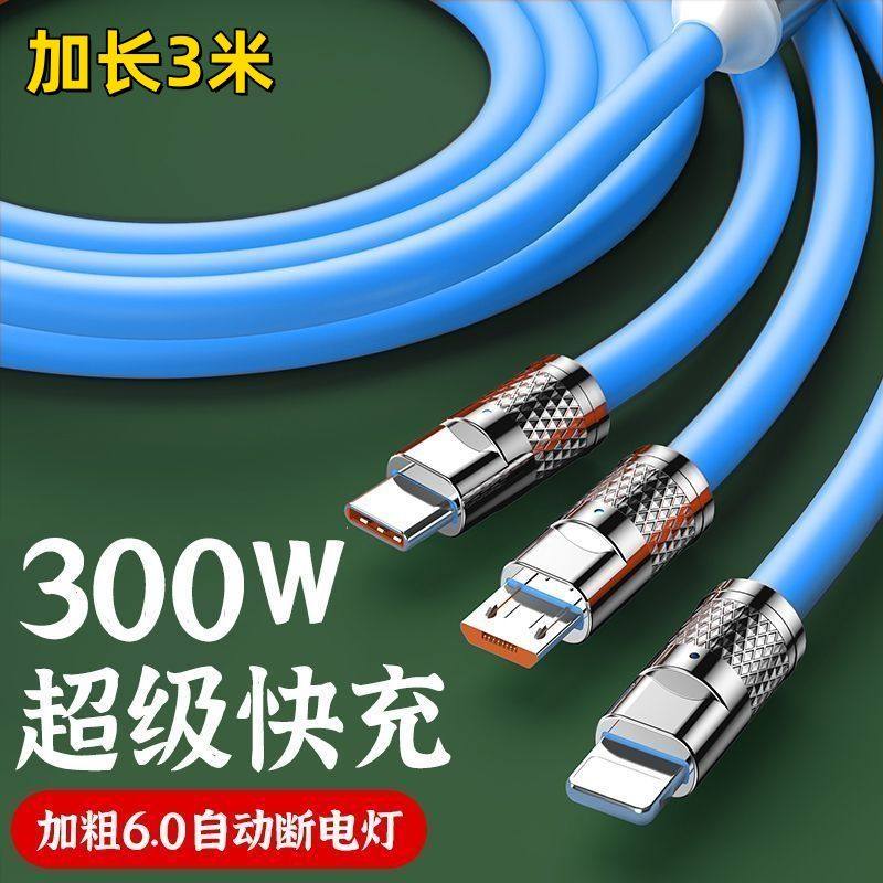 【120W超级快充】数据线三合一6A充电器一拖三车载万能通用手机usb多头二用多功能适用于华为苹果安卓typec