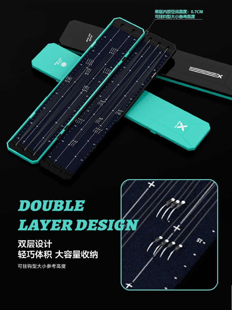 雷臣竞技双层超薄子线盒新款加长鱼钩盒绒布内衬仕挂盒大容量线盒