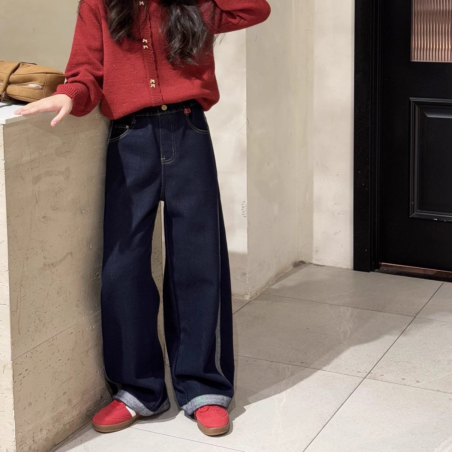 天依角2024冬款男女童一体绒牛仔直筒裤中大童阔腿长裤26239