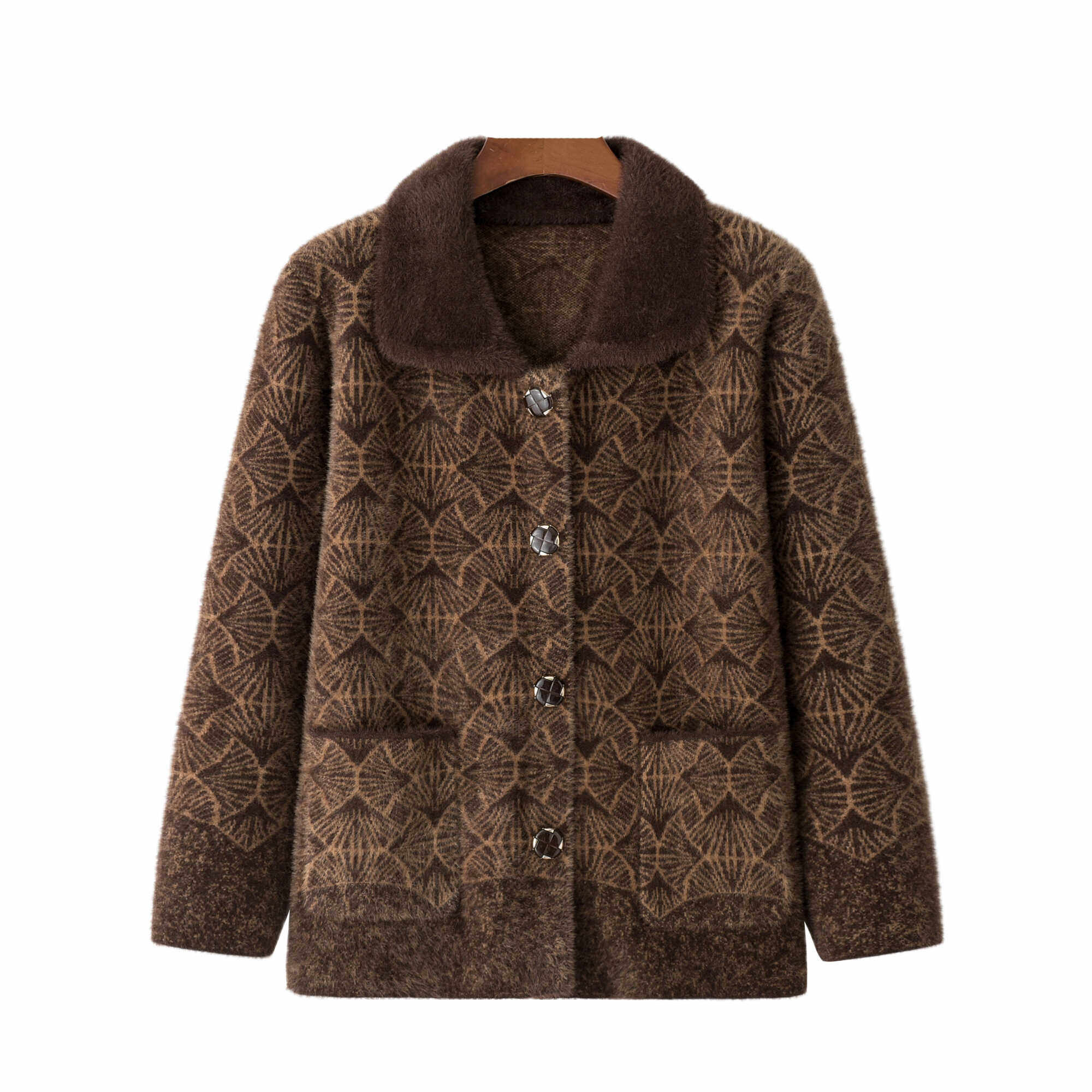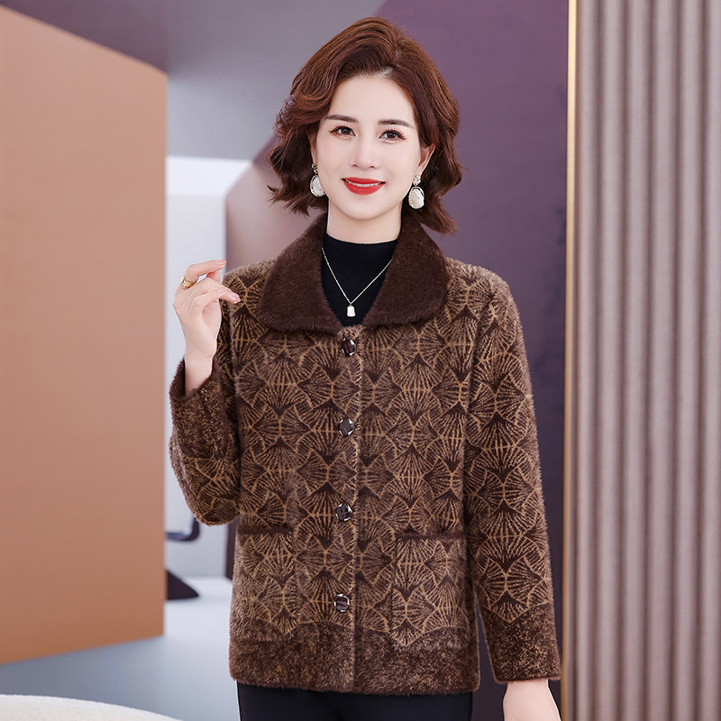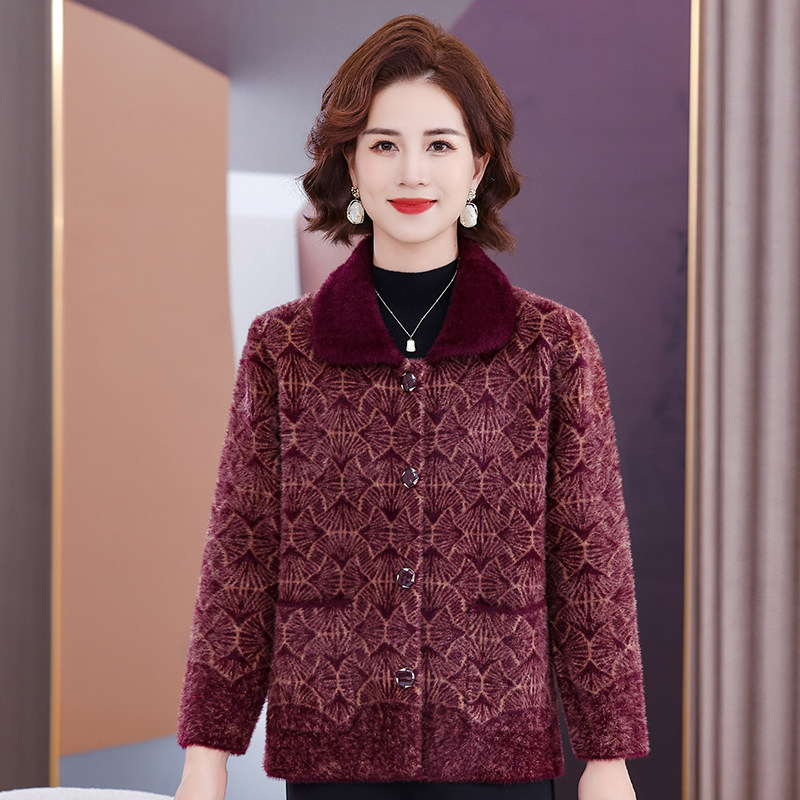 奶奶装冬季防水貂绒针织外套中老年翻领高贵加厚保暖上衣妈妈衣服