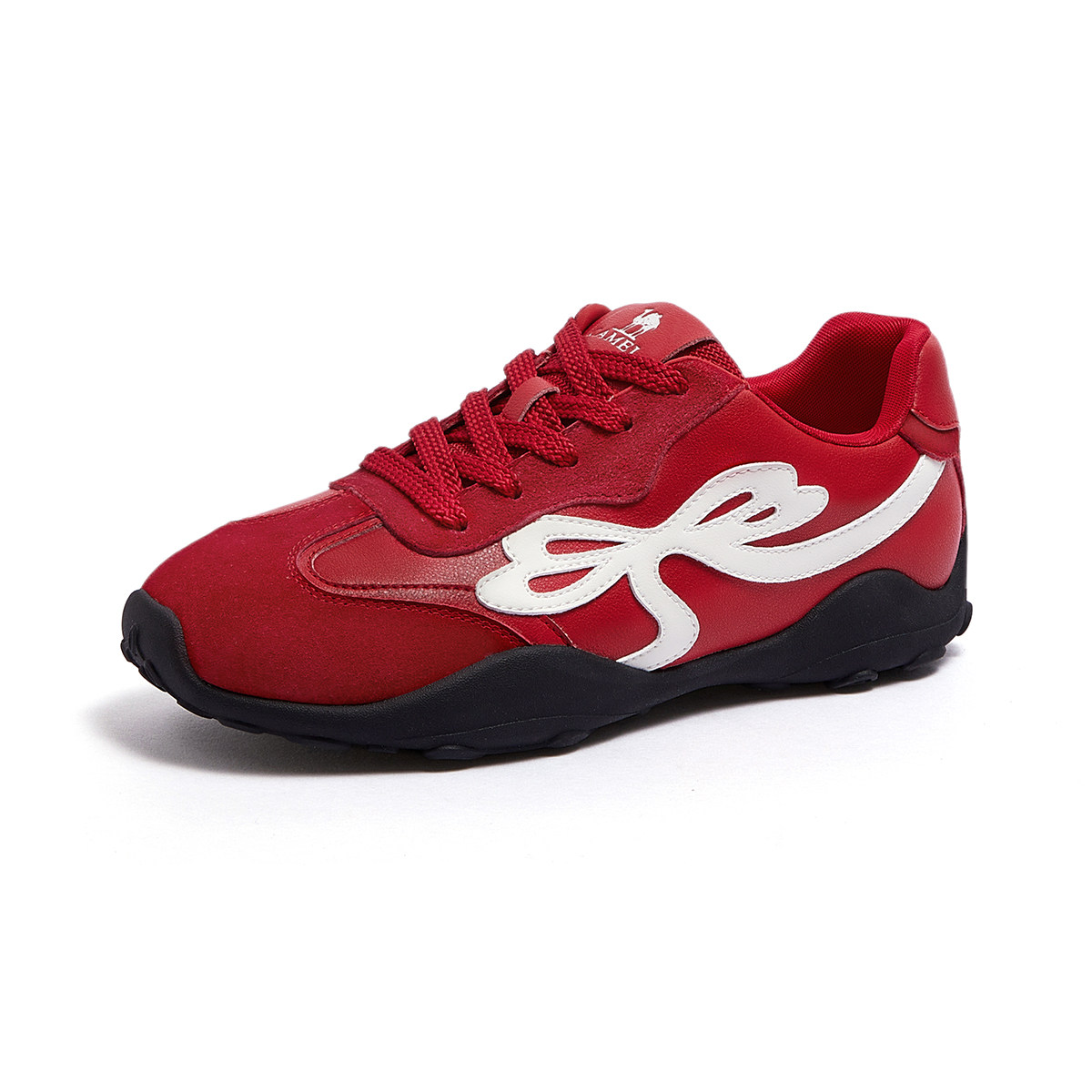 骆驼女鞋2026春季新款复古德训鞋百搭板鞋红色鞋子女时尚休闲鞋