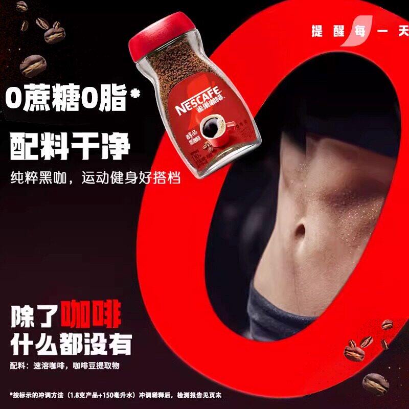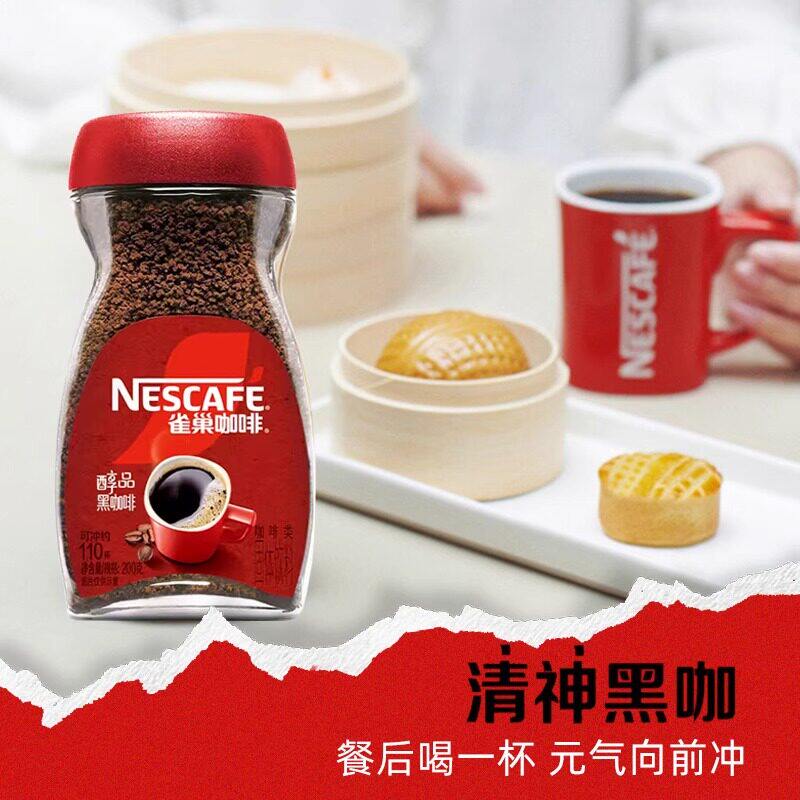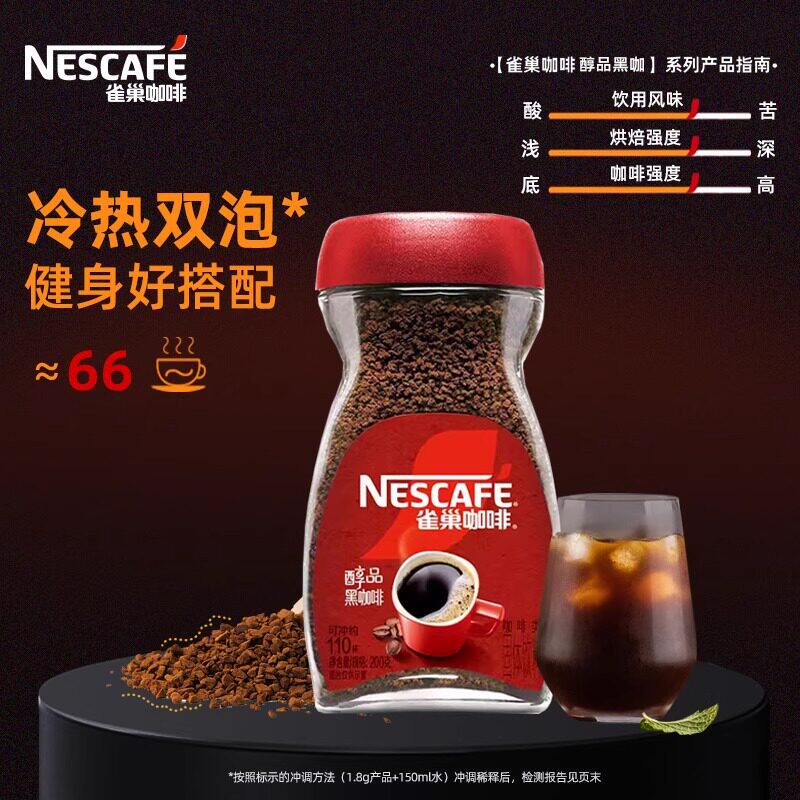 雀巢黑咖啡巴西醇品原装进口无蔗糖美式速溶咖啡粉200g健身提神