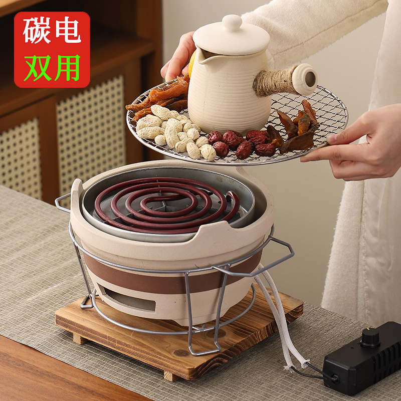 冬天围炉煮茶家用全套室内电碳两用泥炉子电炉丝家庭烤火炉烧烤炉