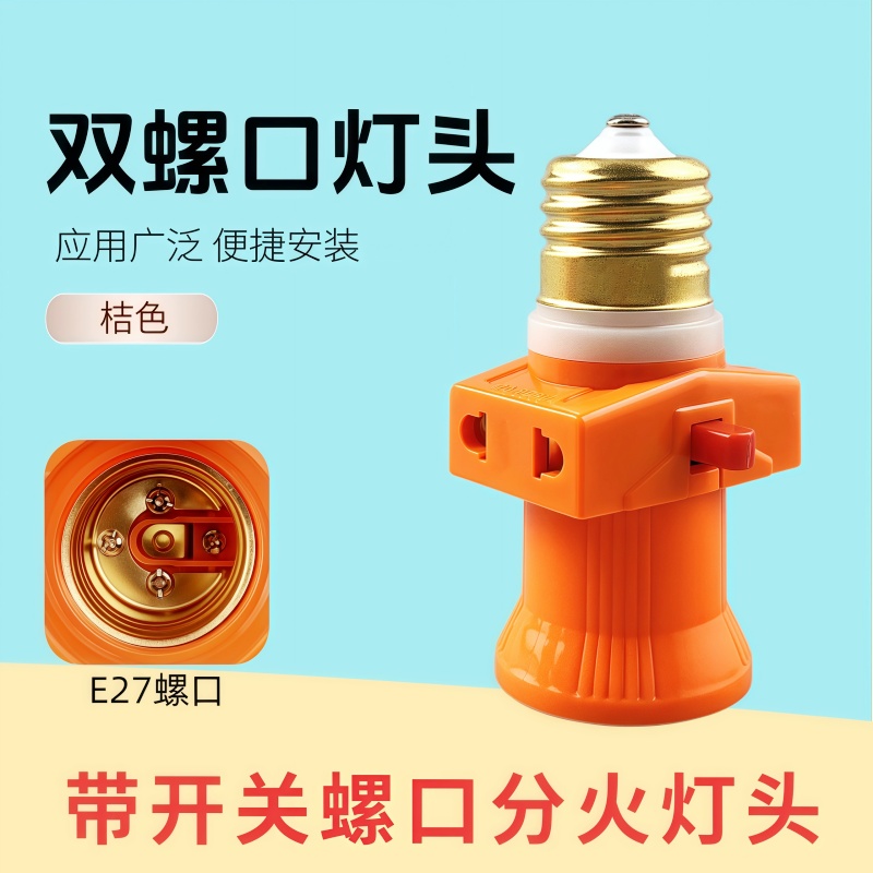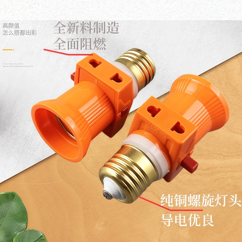 E27通用型家用宿舍多用双螺口悬吊式螺旋灯座LED灯头带开关插孔