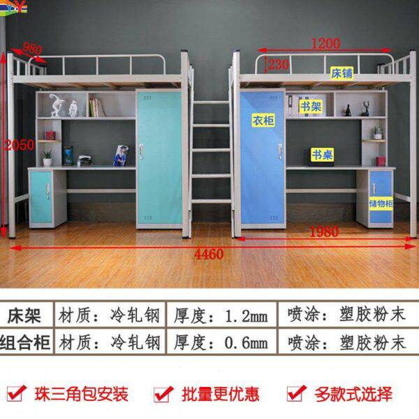 宿舍上床下桌大学生组合床带铁床高低床连体公寓双人步员工衣柜梯