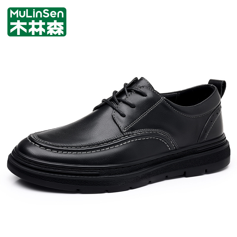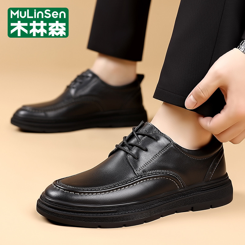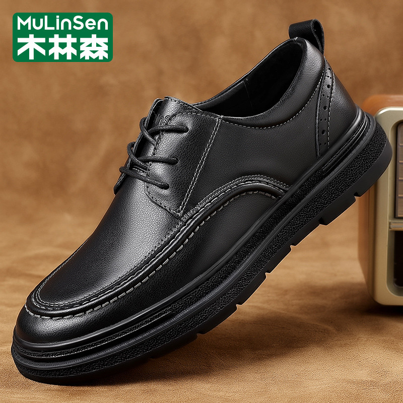 木林森皮鞋男冬季潮流商务正装英伦休闲头层牛皮软底爸爸驾车潮鞋