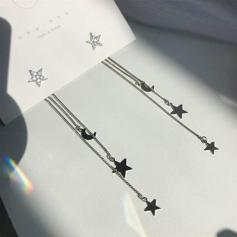 XBK高级感长款星星女年气质银个性s时尚耳环潮新款月亮流苏