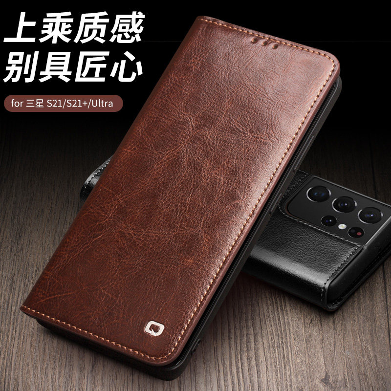 适用三星 Galaxy S21 Ultra手机壳真皮翻盖S21 +手机套商务多插卡S20 5G保护壳牛皮note20 ultra保护套男士款