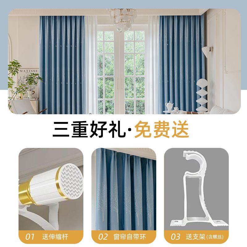 2024新款窗帘卧室客厅高级感遮光免打孔安装窗帘罗马杆全套伸缩杆