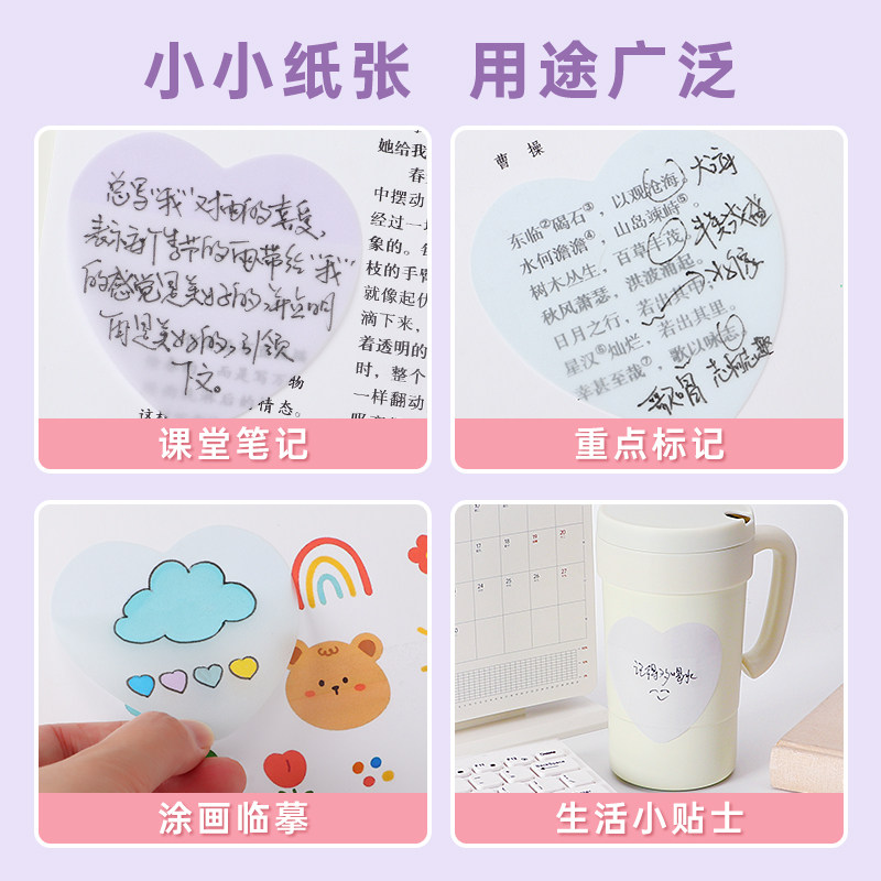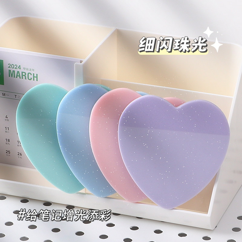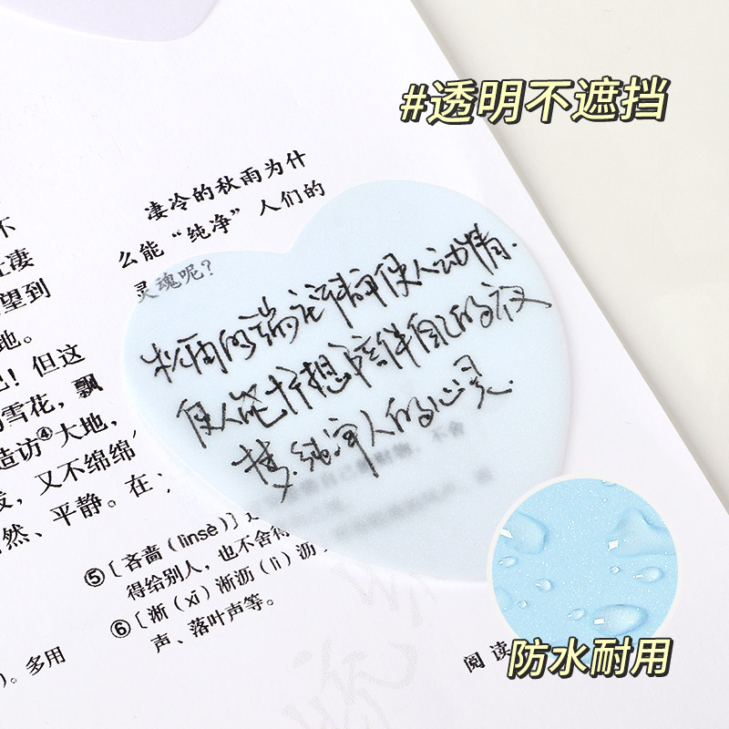 宝克透明珠光便利贴心型学生便签纸本考研重点标记做笔记初中生专用防水粘性速干高颜值可撕办公用贴纸TZ3018