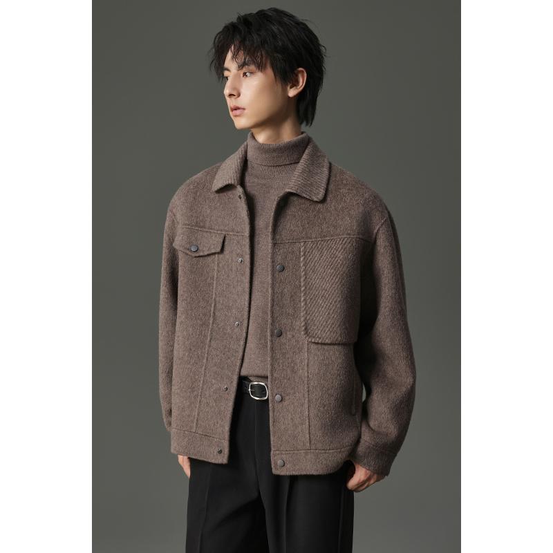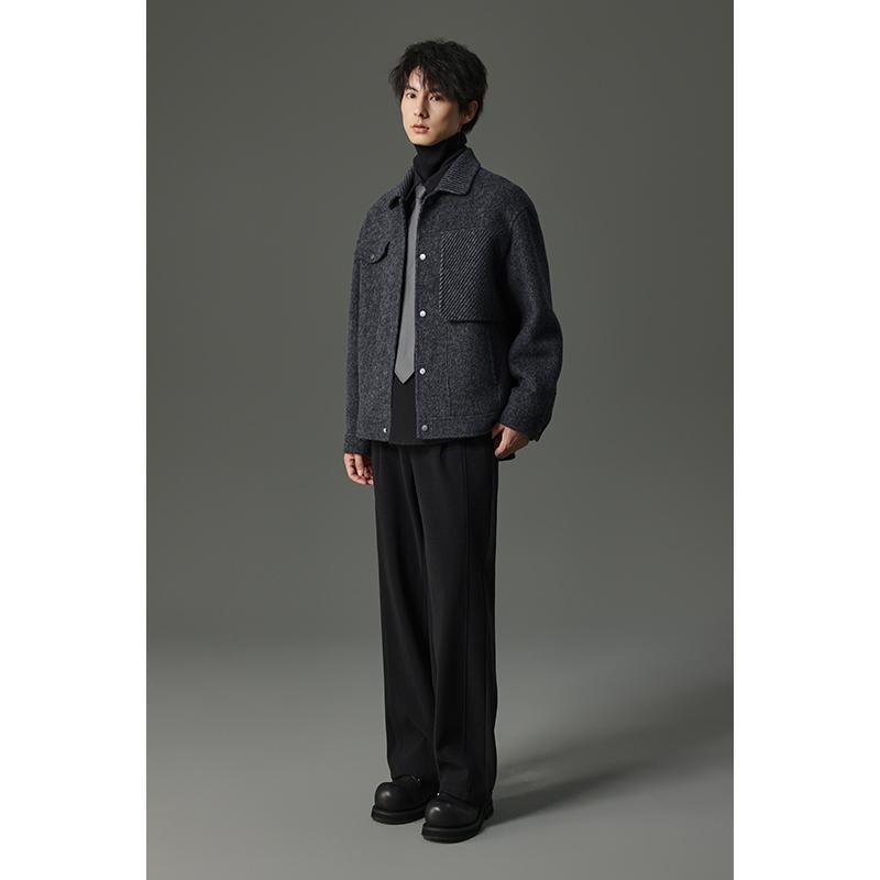 w2x秋冬季拼色活页双面羊毛呢夹克男设计感妮子外套青年休闲上衣