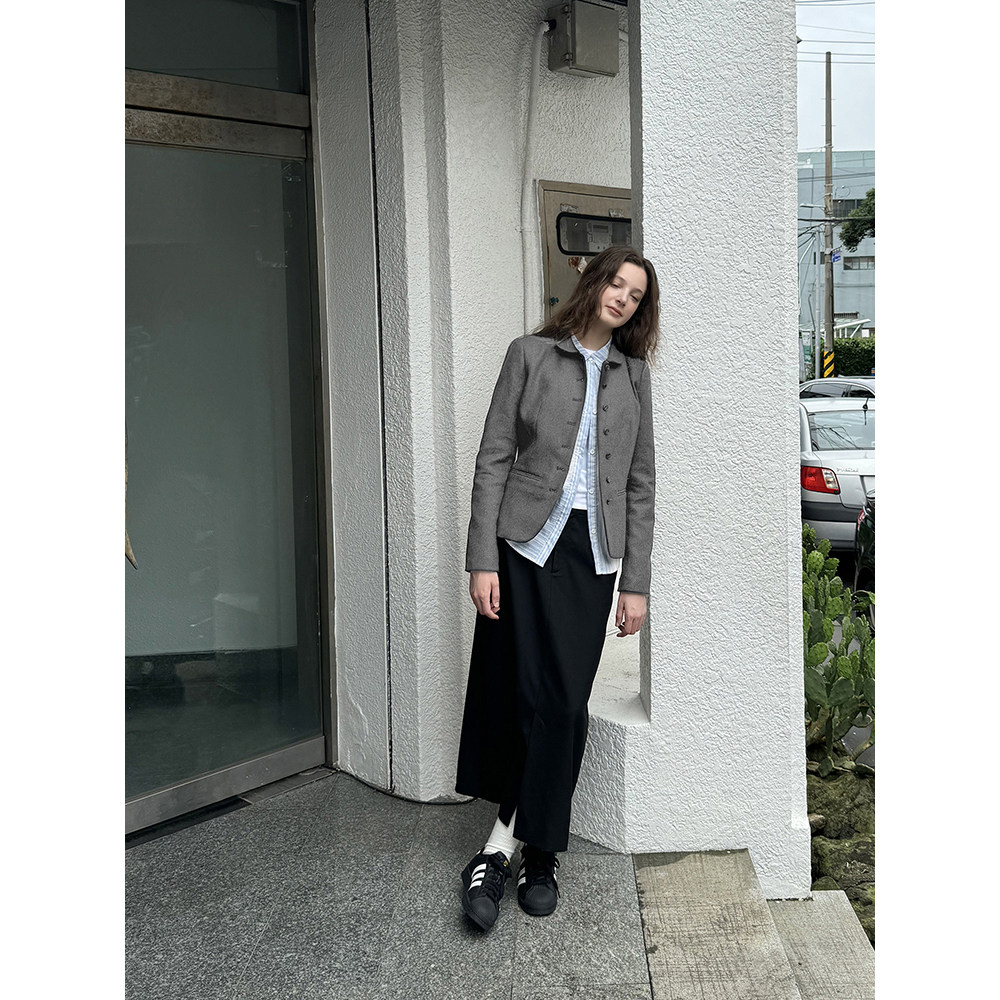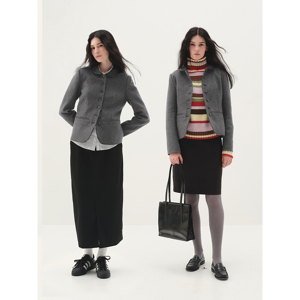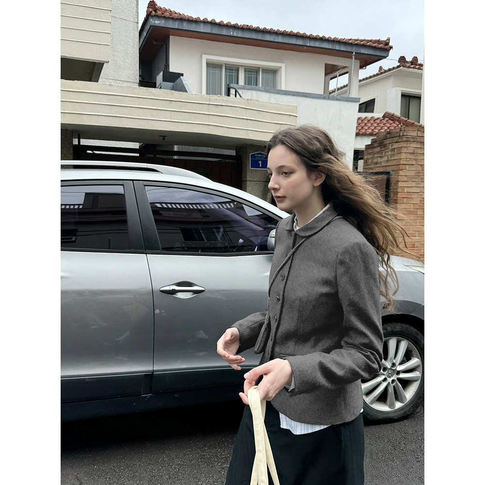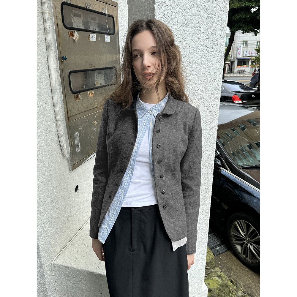 UNRETRO 羊毛混纺/短款娃娃领西装外套女秋冬款修身收腰西服上衣