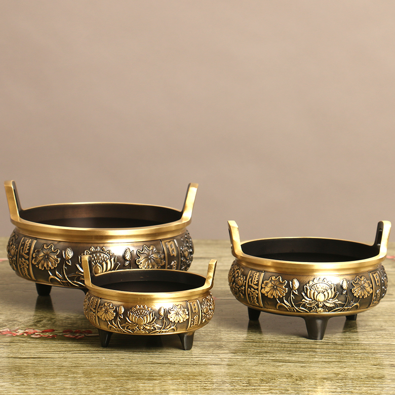 纯铜三足鼎炉铜香炉纯家用室内仿古宣德炉铜炉供佛供奉招财香火炉