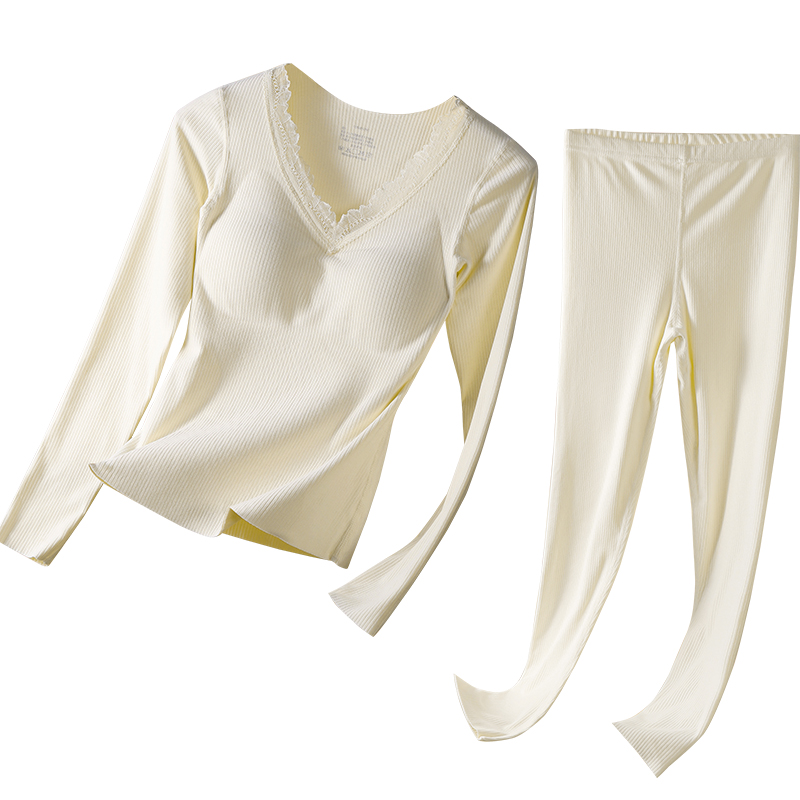 猫人保暖内衣套装女士秋冬季德绒羊绒蚕丝抑菌免穿文胸修身打底衫
