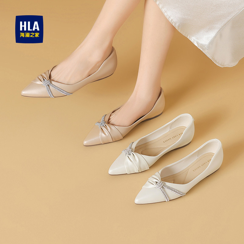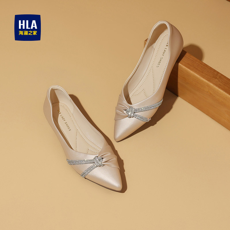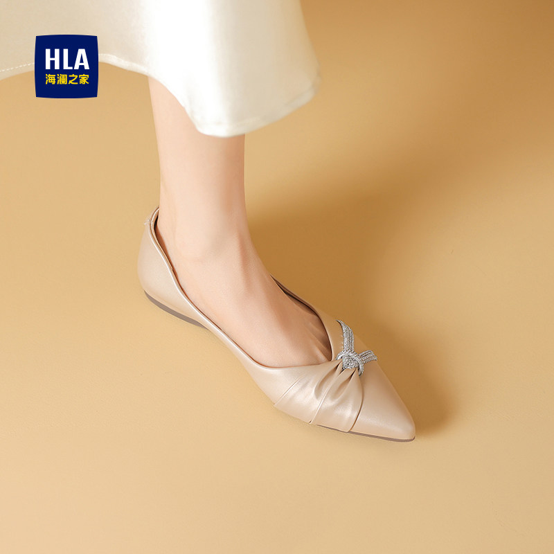 HLA/海澜之家女鞋浅口单鞋女新款尖头蝴蝶结法式气质优雅平底单鞋