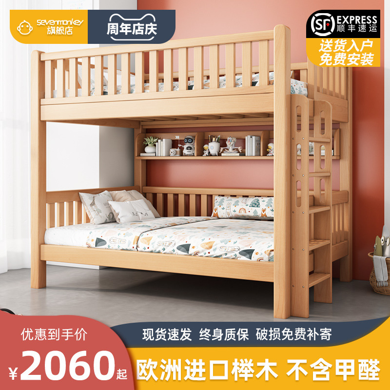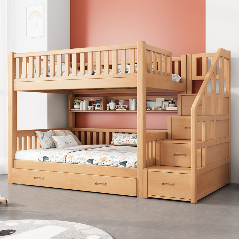 榉木上下床双层床全实木高低床子母床小户型两层上下铺儿童床定制