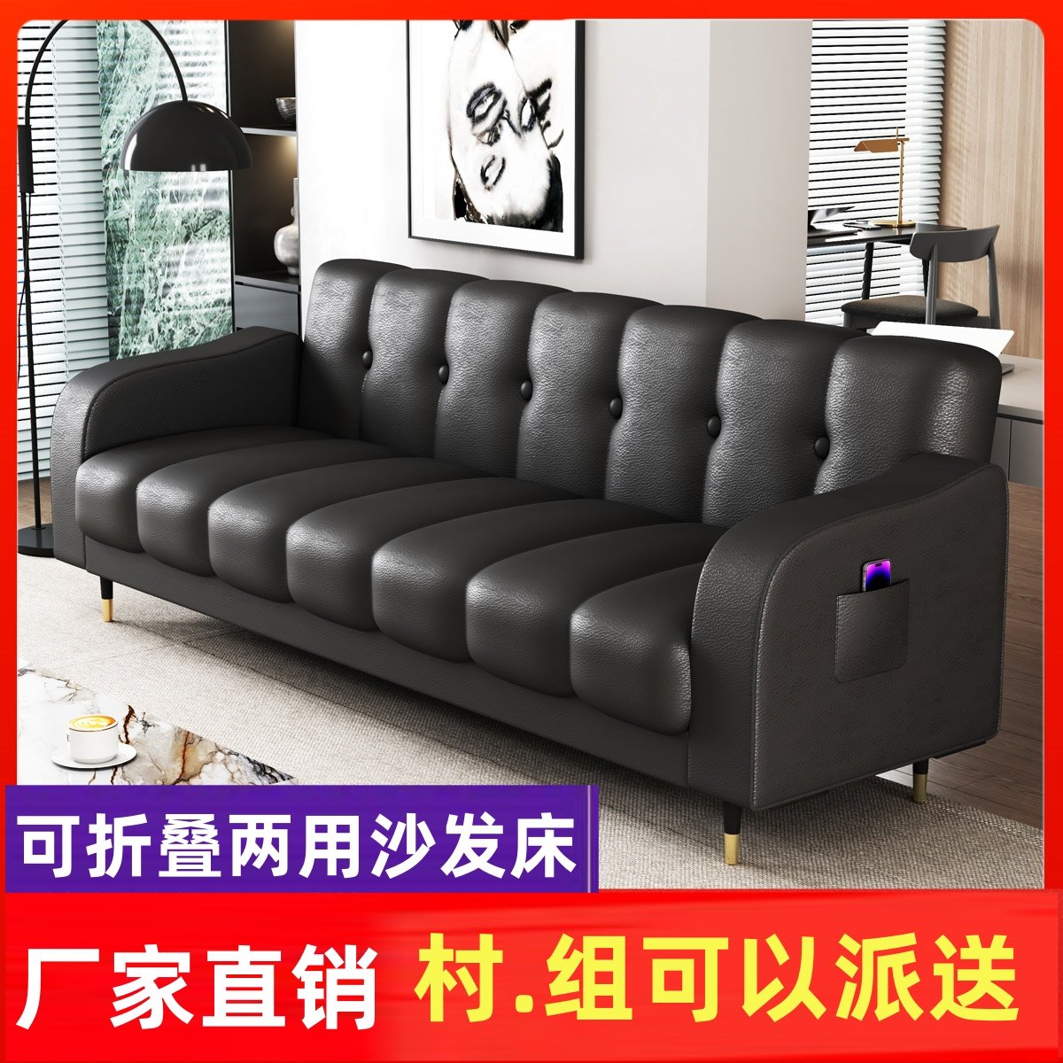 猫爪皮可折叠两用沙发床双人三人小户型客厅出租房卧室多功能沙发