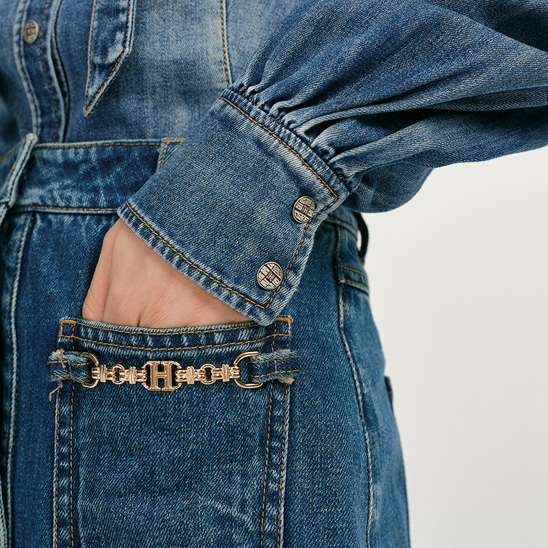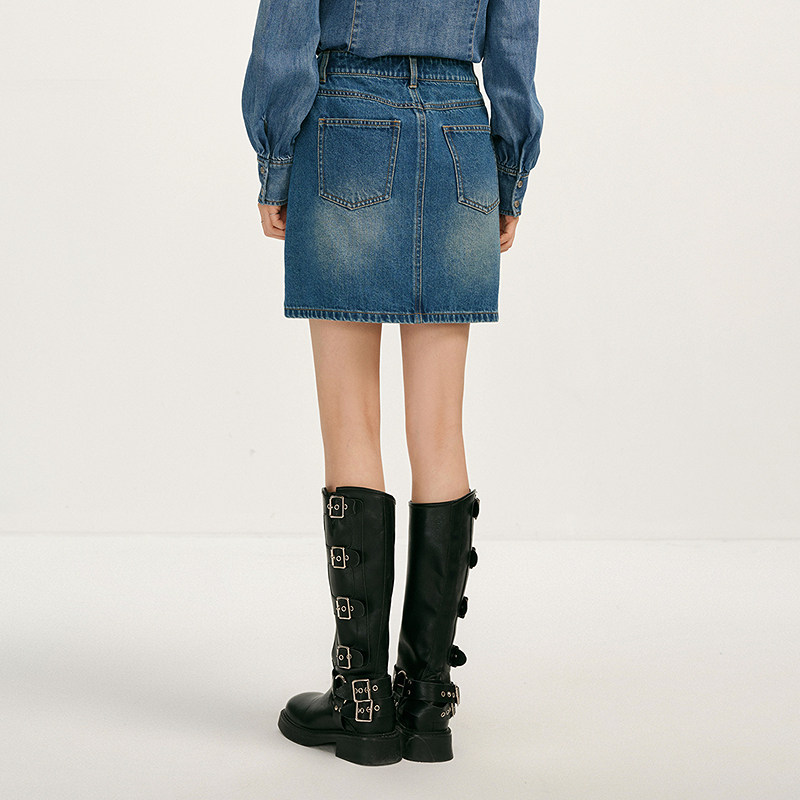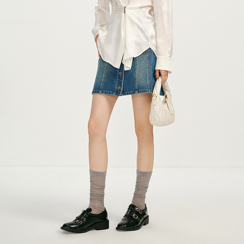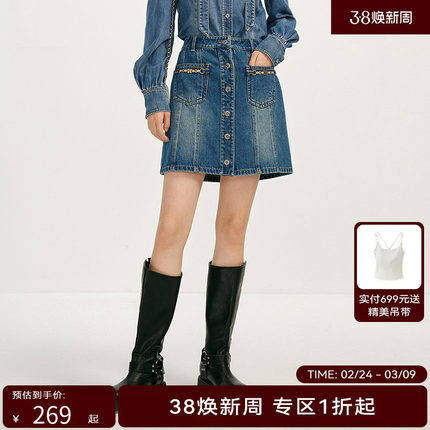 【商场同款】HPLY荷比俪2025春季新款女拼缝复古A型短款牛仔半裙