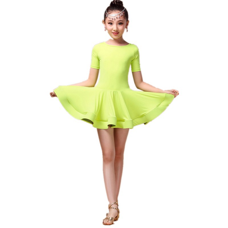 儿童拉丁服夏季新款女童长短袖舞蹈裙女孩比赛表演服装少儿练功服