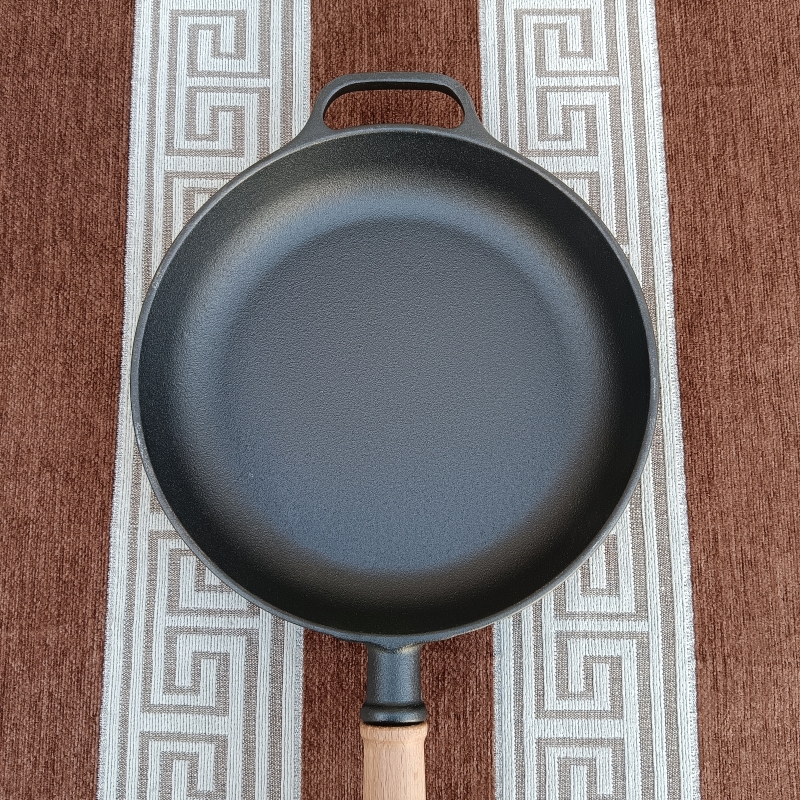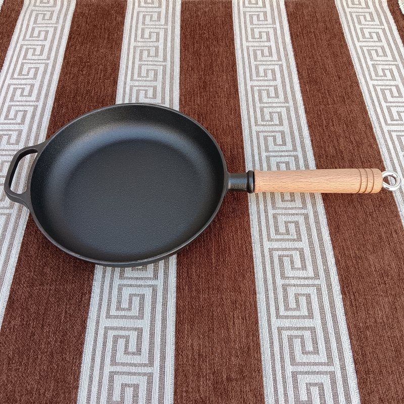 铸铁木把平底锅多功能煎锅牛排锅家用烙饼锅煎蛋锅无涂层水煎包锅