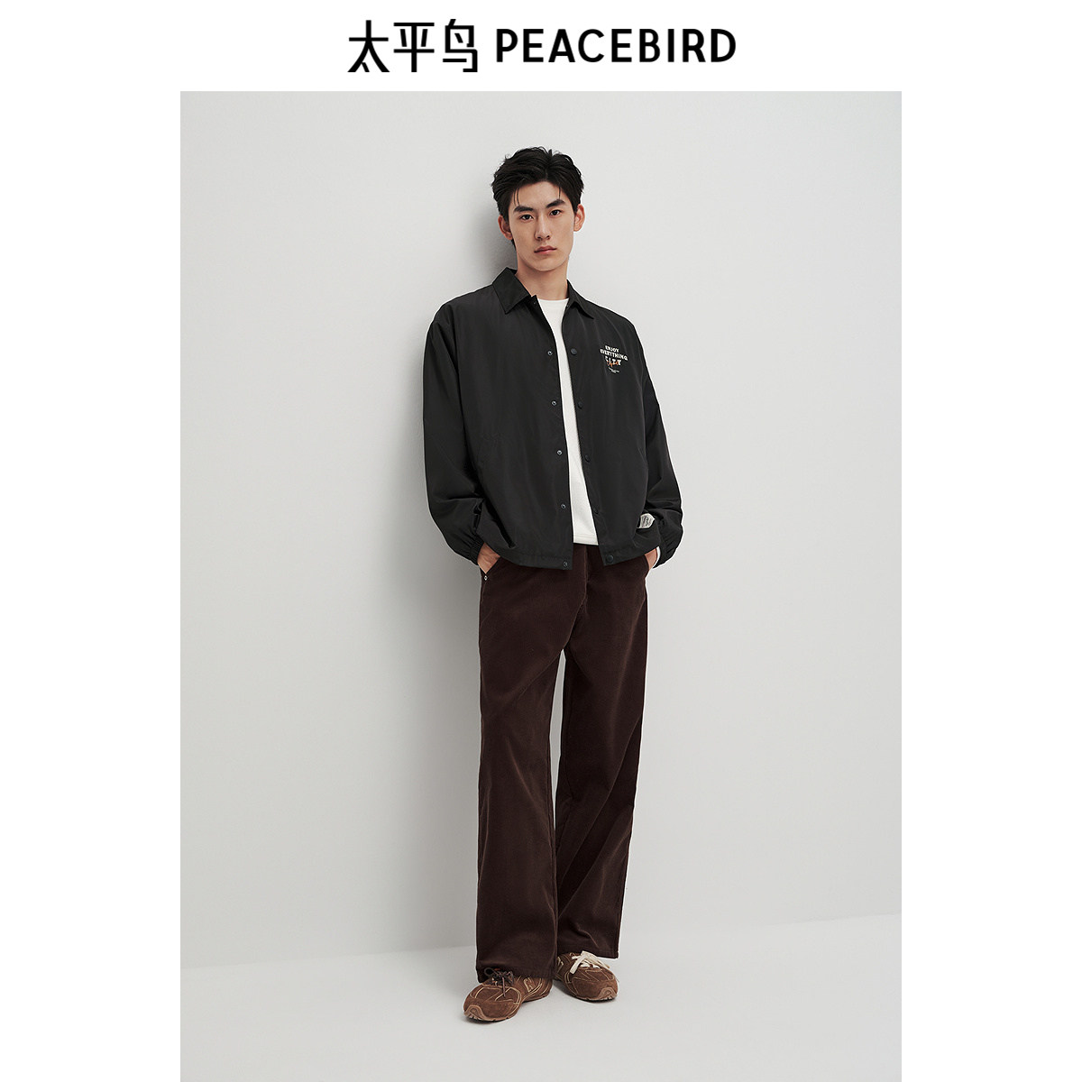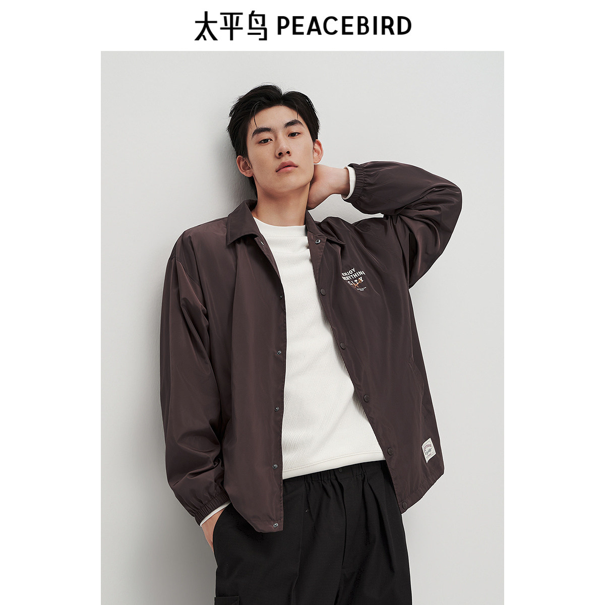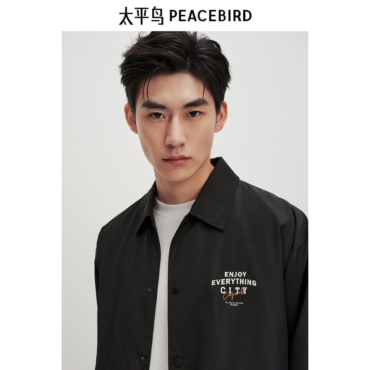 太平鸟男装潮流教练夹克秋印花翻领休闲外套时尚刺绣茄克