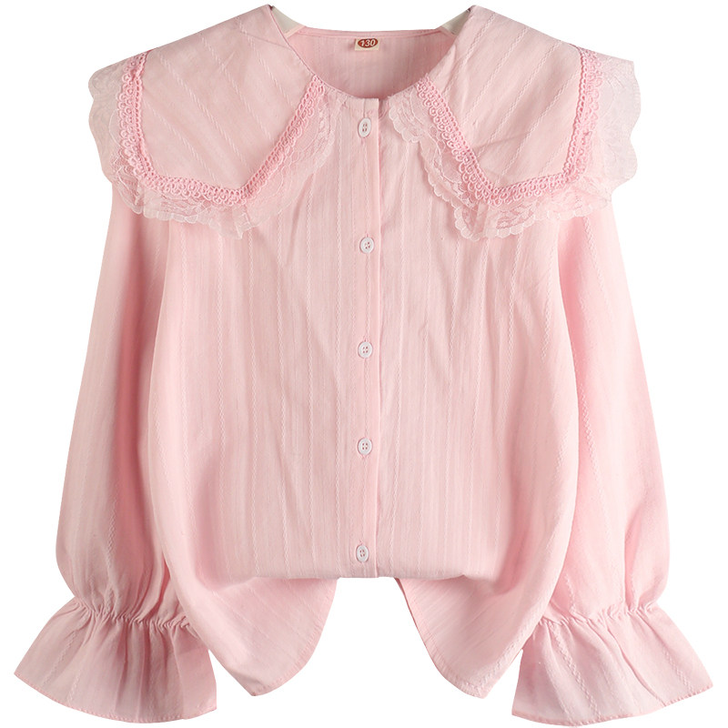 果拉拉花边娃娃领女童衬衫纯棉2025春秋款中大童女宝长袖白色衬衣