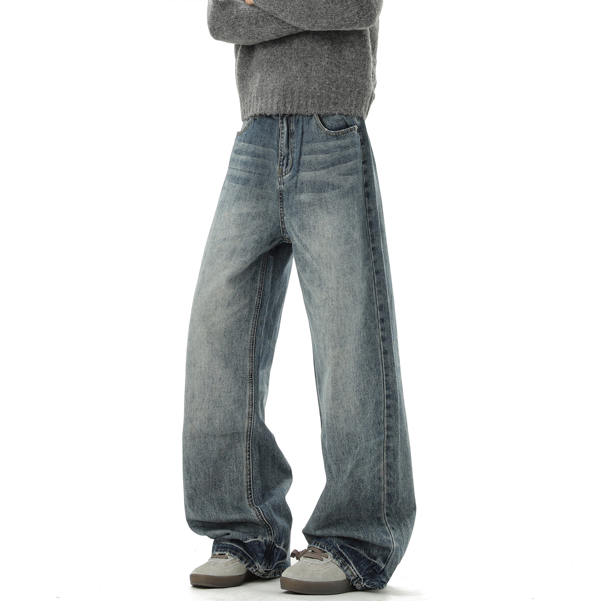 美式水洗做旧直筒牛仔裤男秋季
