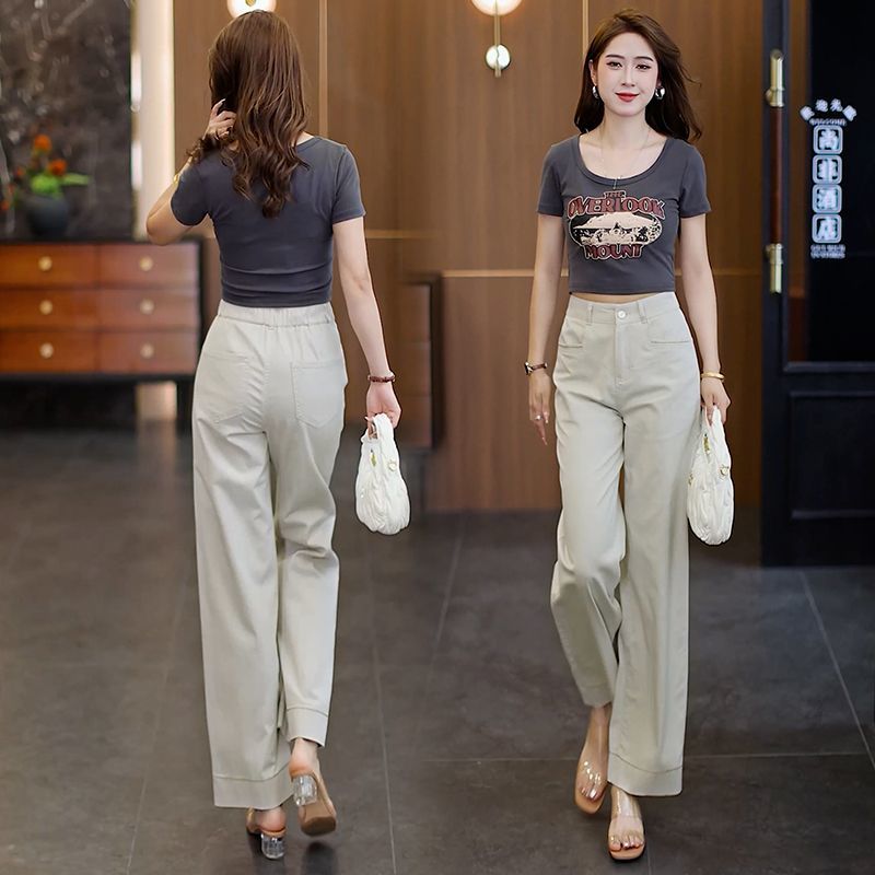 天丝棉窄版直筒裤女夏薄款宽松显瘦2025年新款高腰西装九分阔腿裤