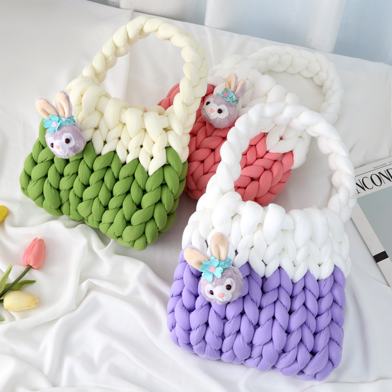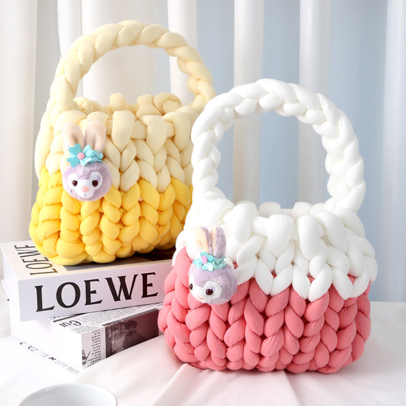小蔻撞色冰岛包diy手工编织包包超粗毛线自制甜妹风星黛露手拎包
