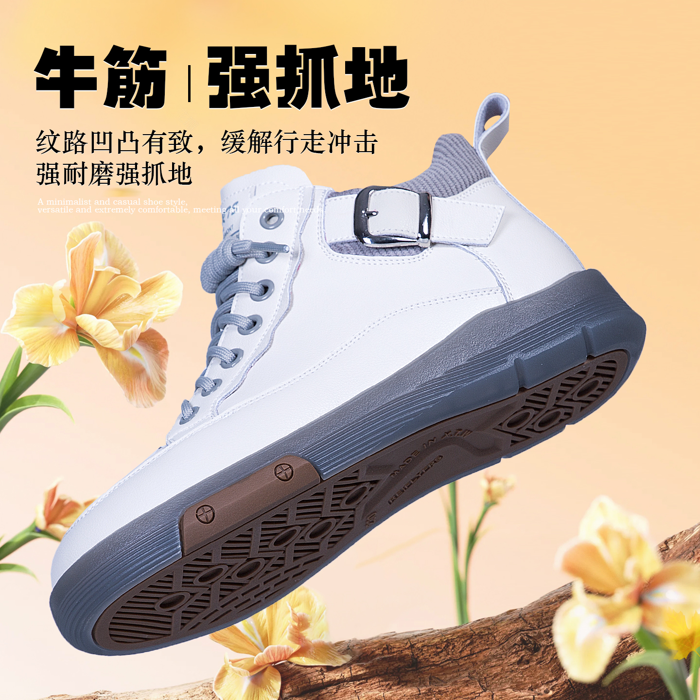 短靴女2025新款秋季女鞋真皮软底小白鞋女士高帮鞋春秋牛筋底靴子