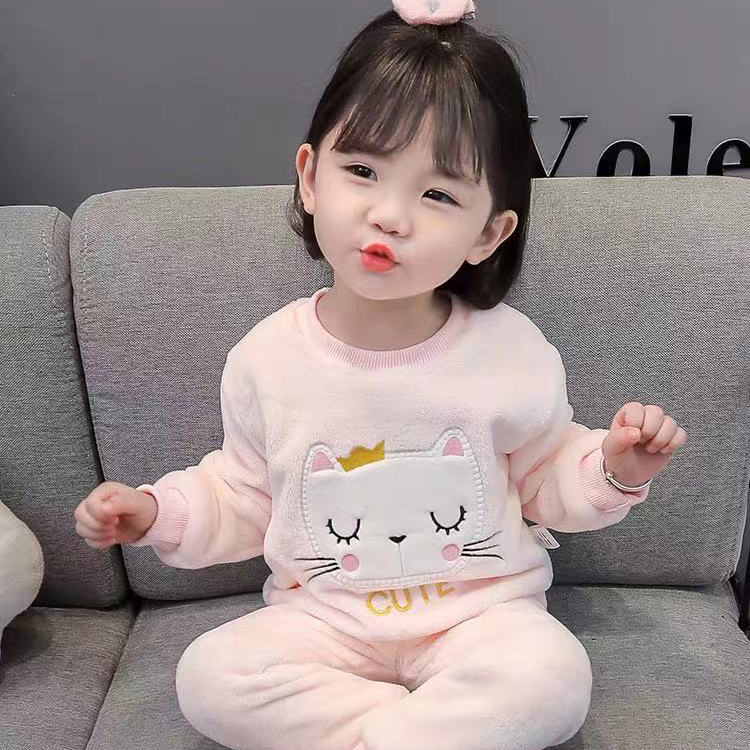 儿童珊瑚绒睡衣男童女童冬季加厚法兰绒可爱宝宝中大童家居服套装