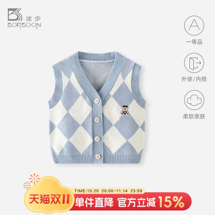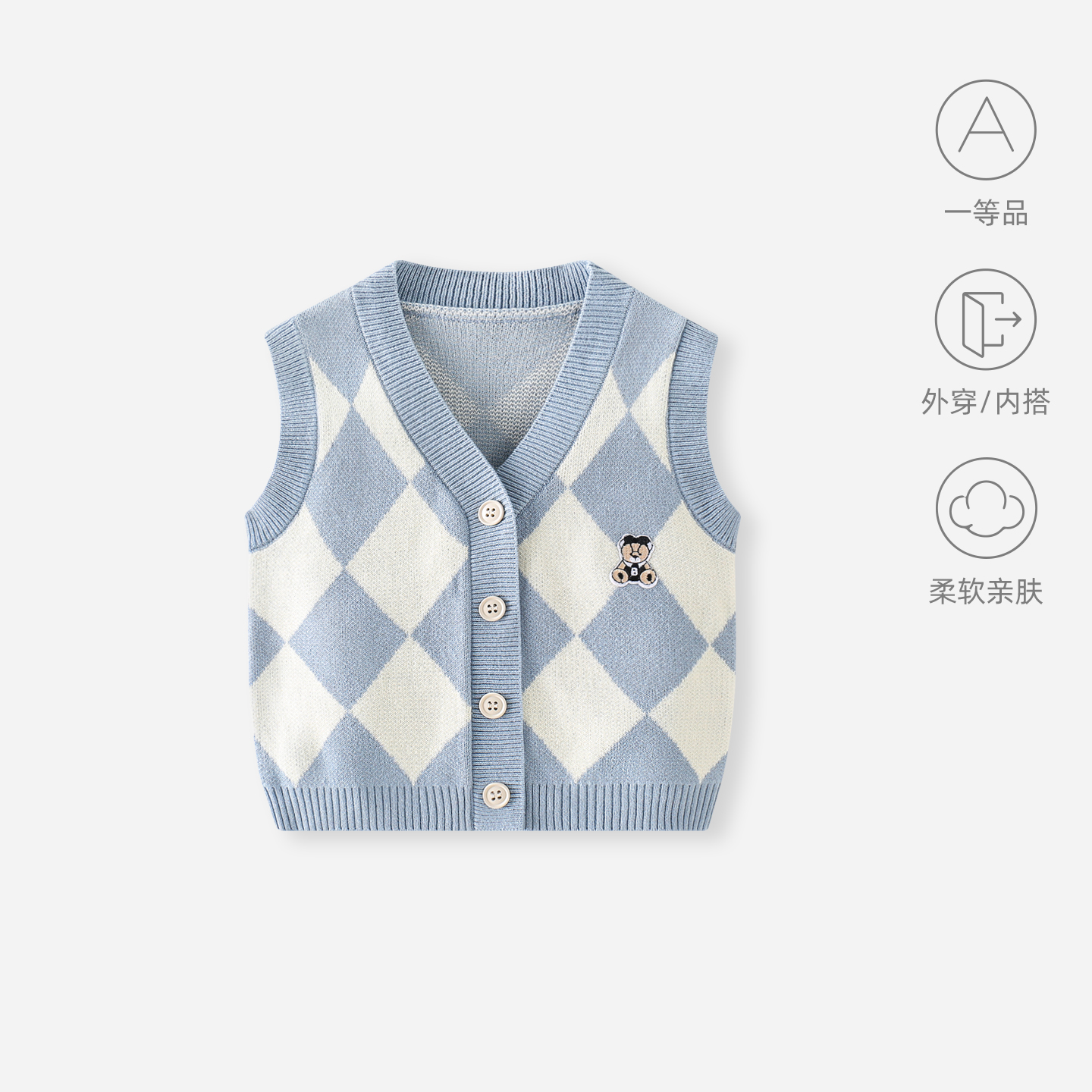 婴儿马甲秋装新款男宝宝针织开衫小背心男童毛衣马夹春秋衣服外搭