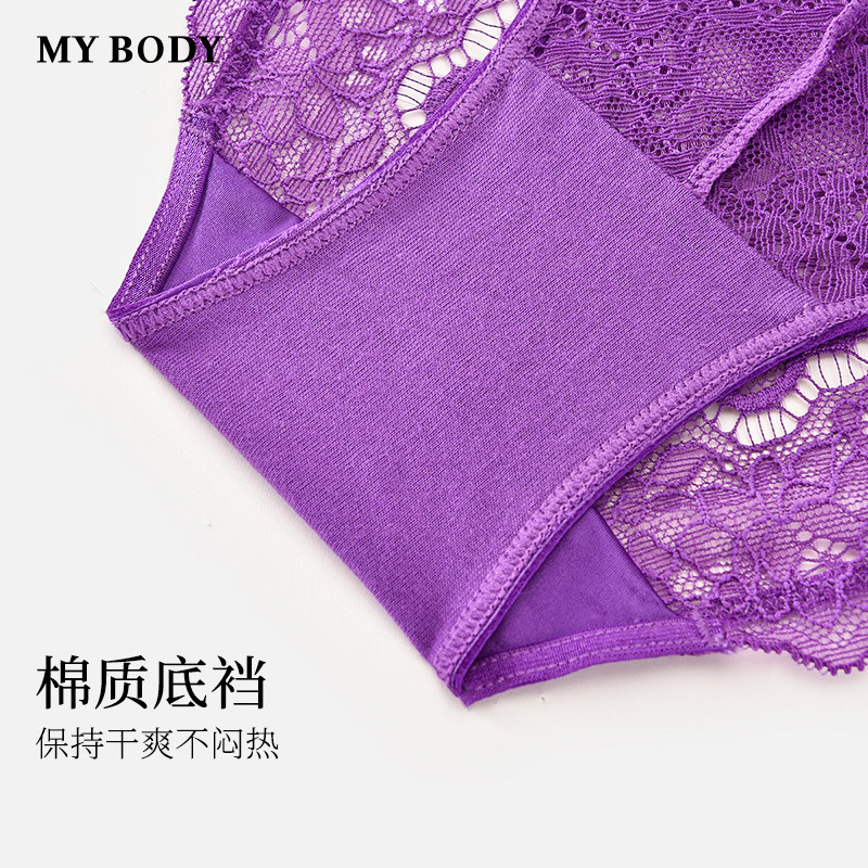 3件159|商场同款MYBODY新款轻薄法式性感纯棉底裆镂空蕾丝内裤女