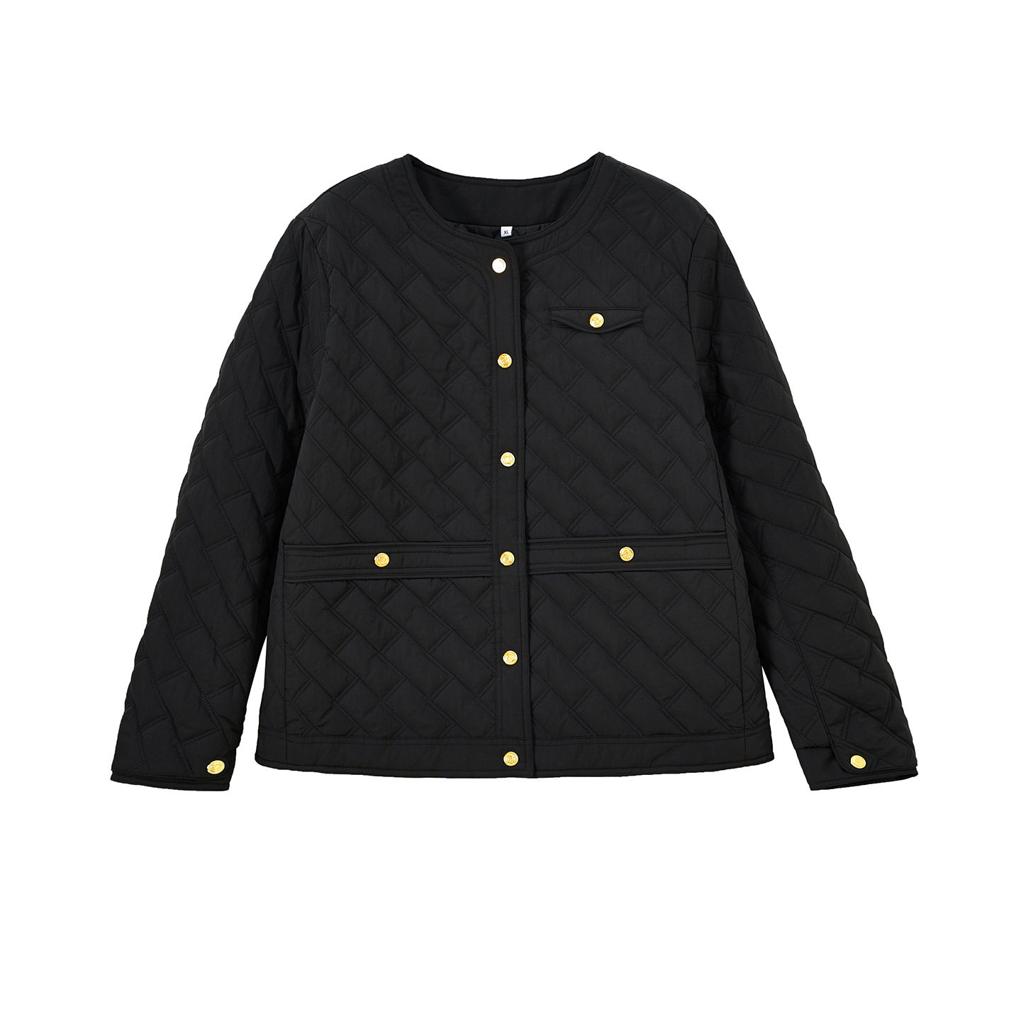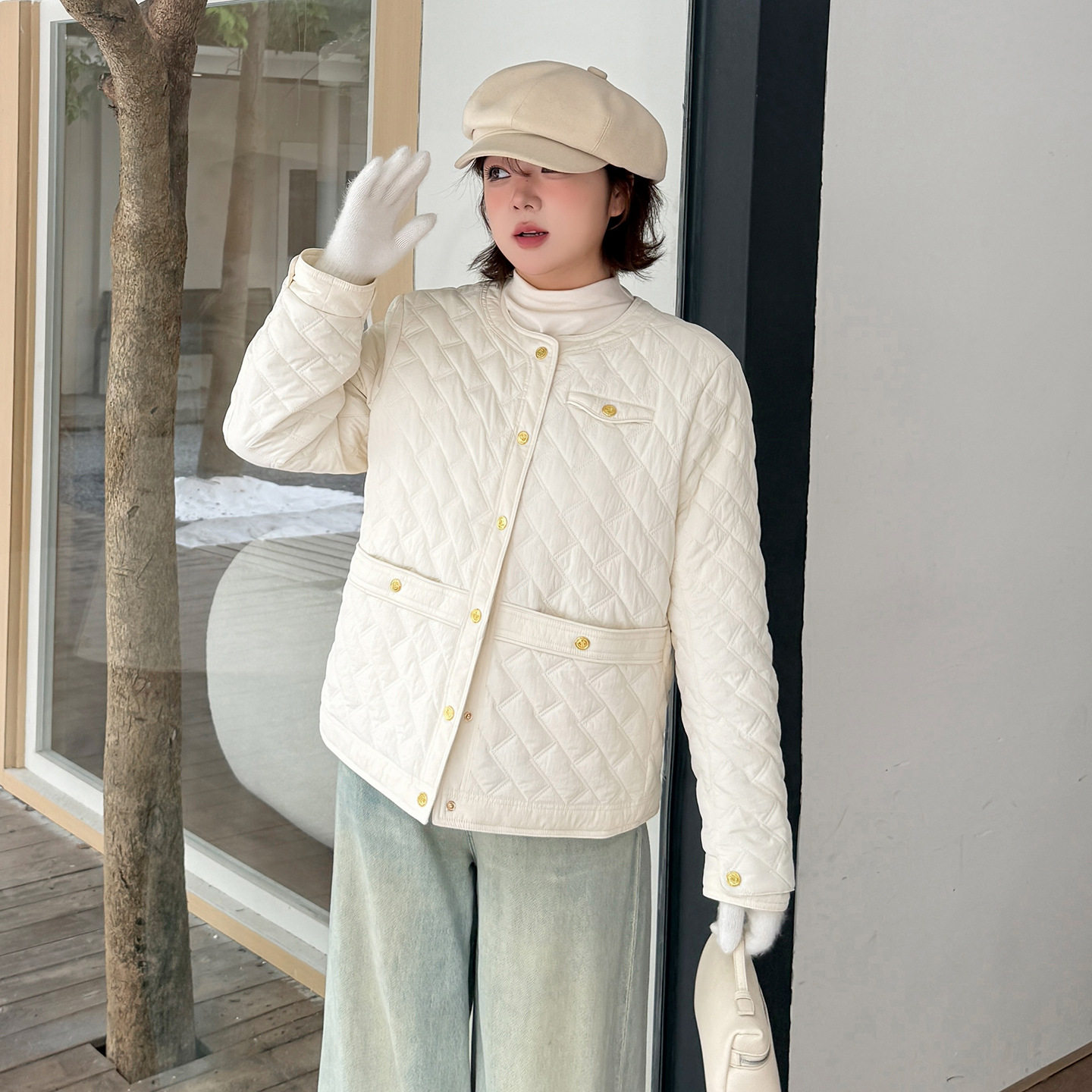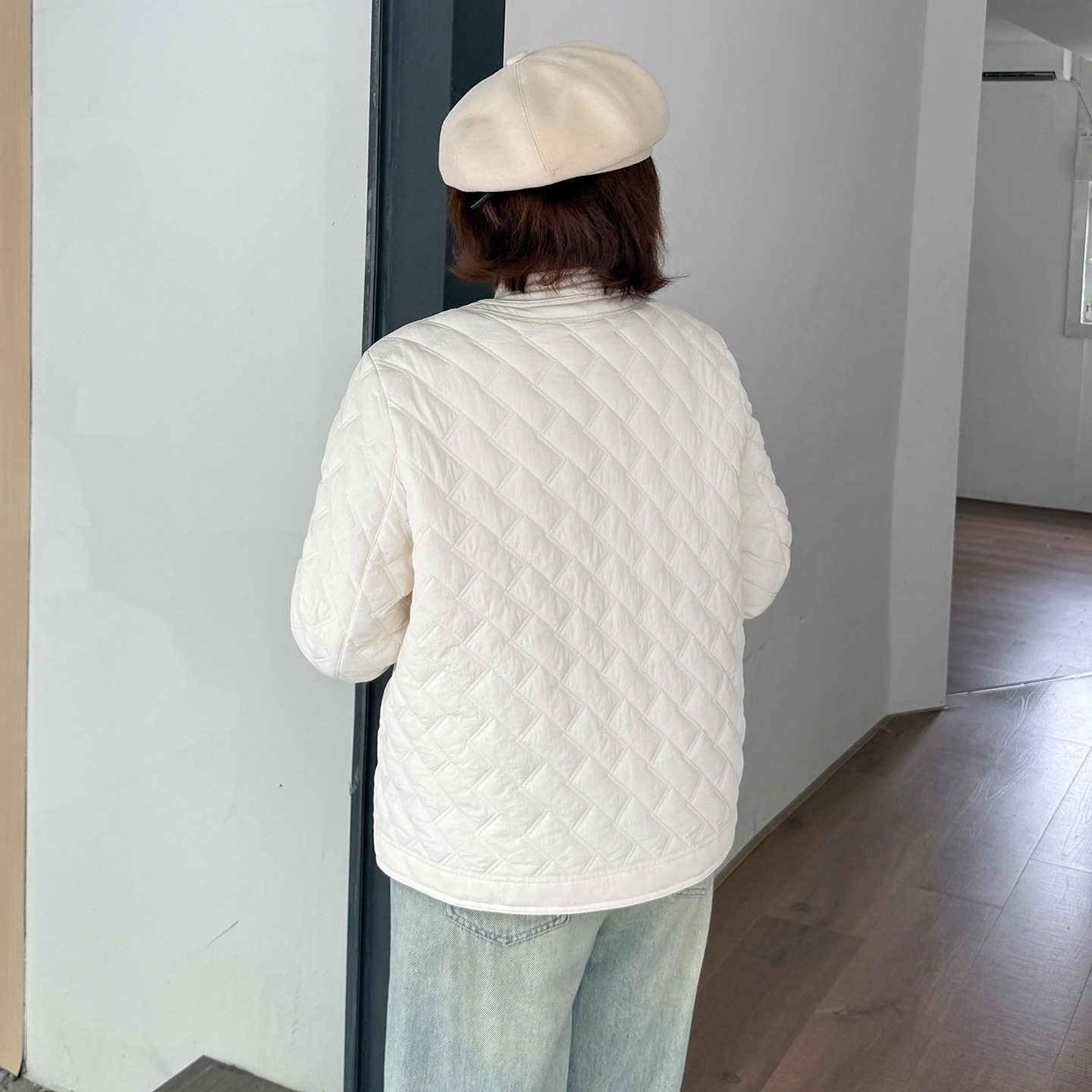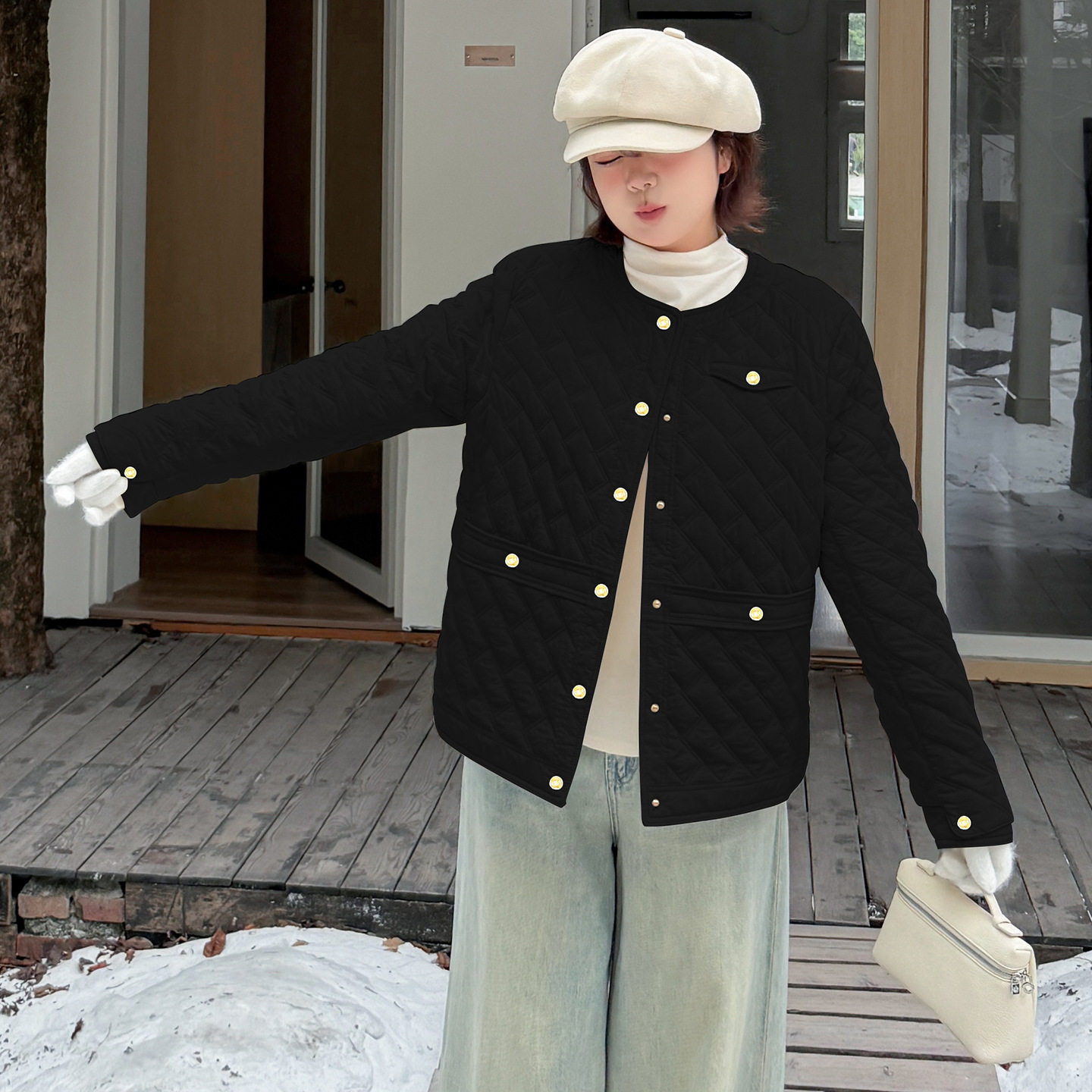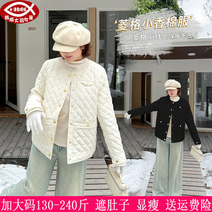 2025冬装新款230斤大码女减龄菱格裥棉保暖棉服胖mm百搭圆领外套