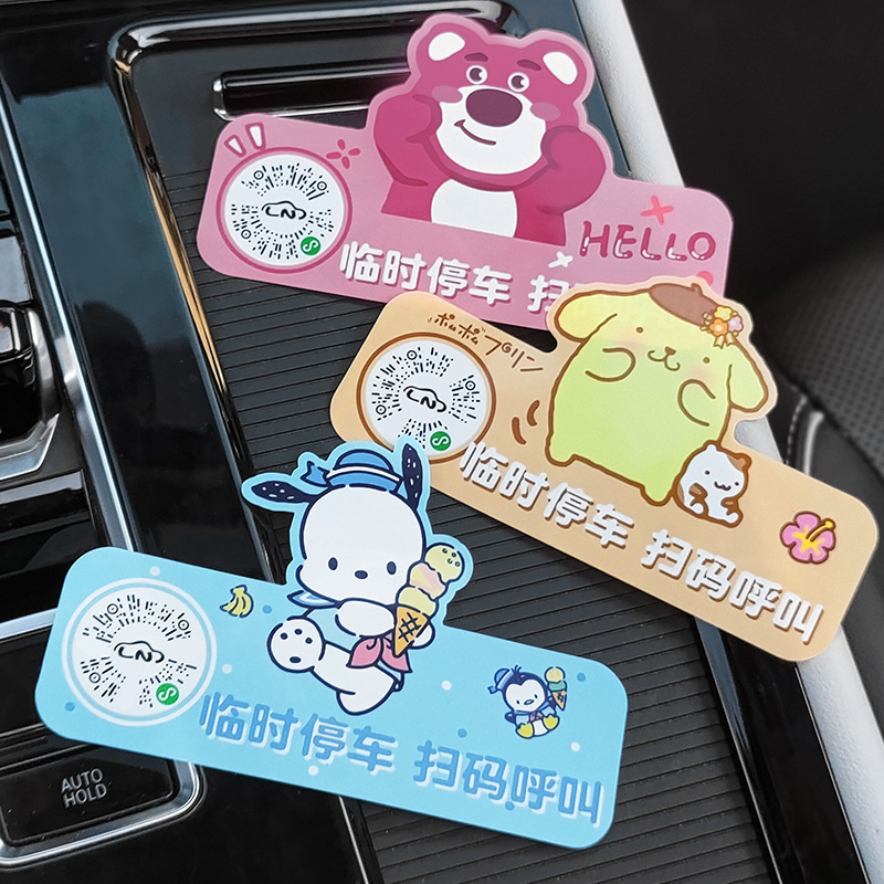 汽车临时停车扫码挪车电话牌卡通二维码停车号码牌车载移车静电贴